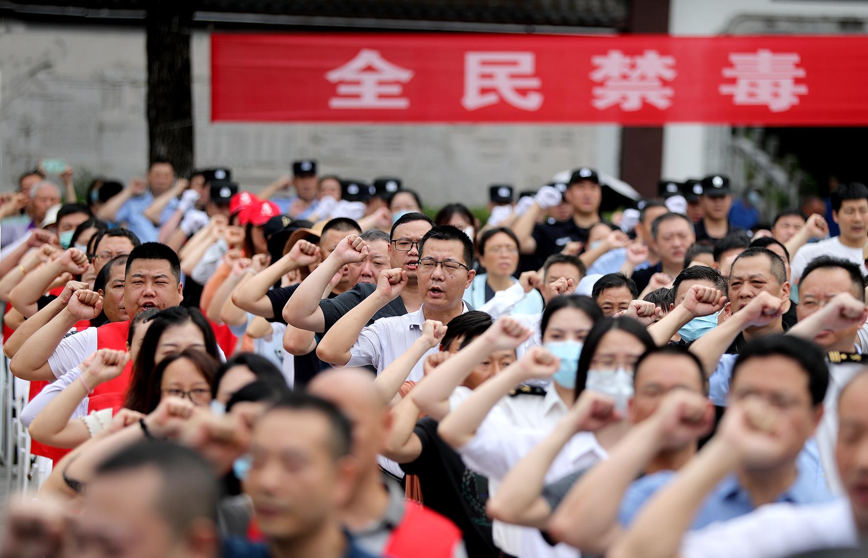 6月25日,湖北省荊門市禁毒委舉行“6·26”國際禁毒日集中宣傳暨銷毀毒品活動(dòng),300多名市民集體進(jìn)行禁毒宣誓。