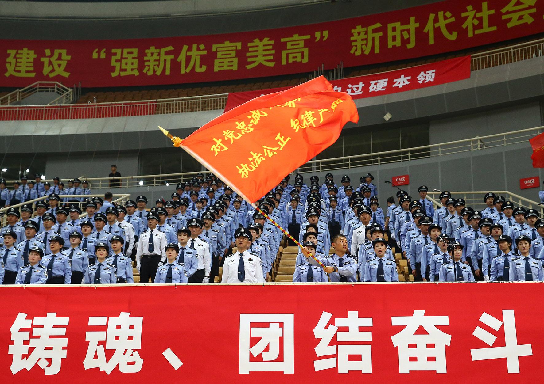 6月30日晚,山東省濟(jì)南市公安局在奧體中心東荷體育館舉辦“公安心向黨·放歌新時(shí)代”公安機(jī)關(guān)慶“七一”合唱比賽,唱出“警營(yíng)好聲音”,弘揚(yáng)“公安正能量”。