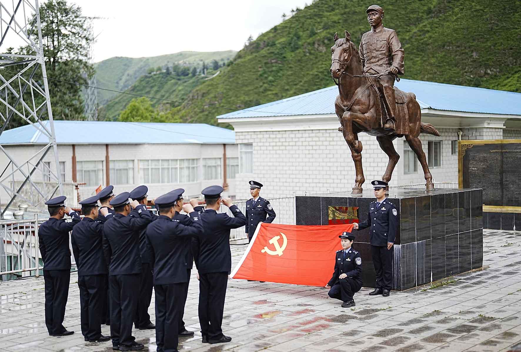 6月29日,甘肅省臨澤縣公安局交警大隊(duì)組織民輔警前往中國(guó)工農(nóng)紅軍西路軍梨園口戰(zhàn)斗遺址重溫入黨誓詞,緬懷革命先烈,傳承西路軍精神。