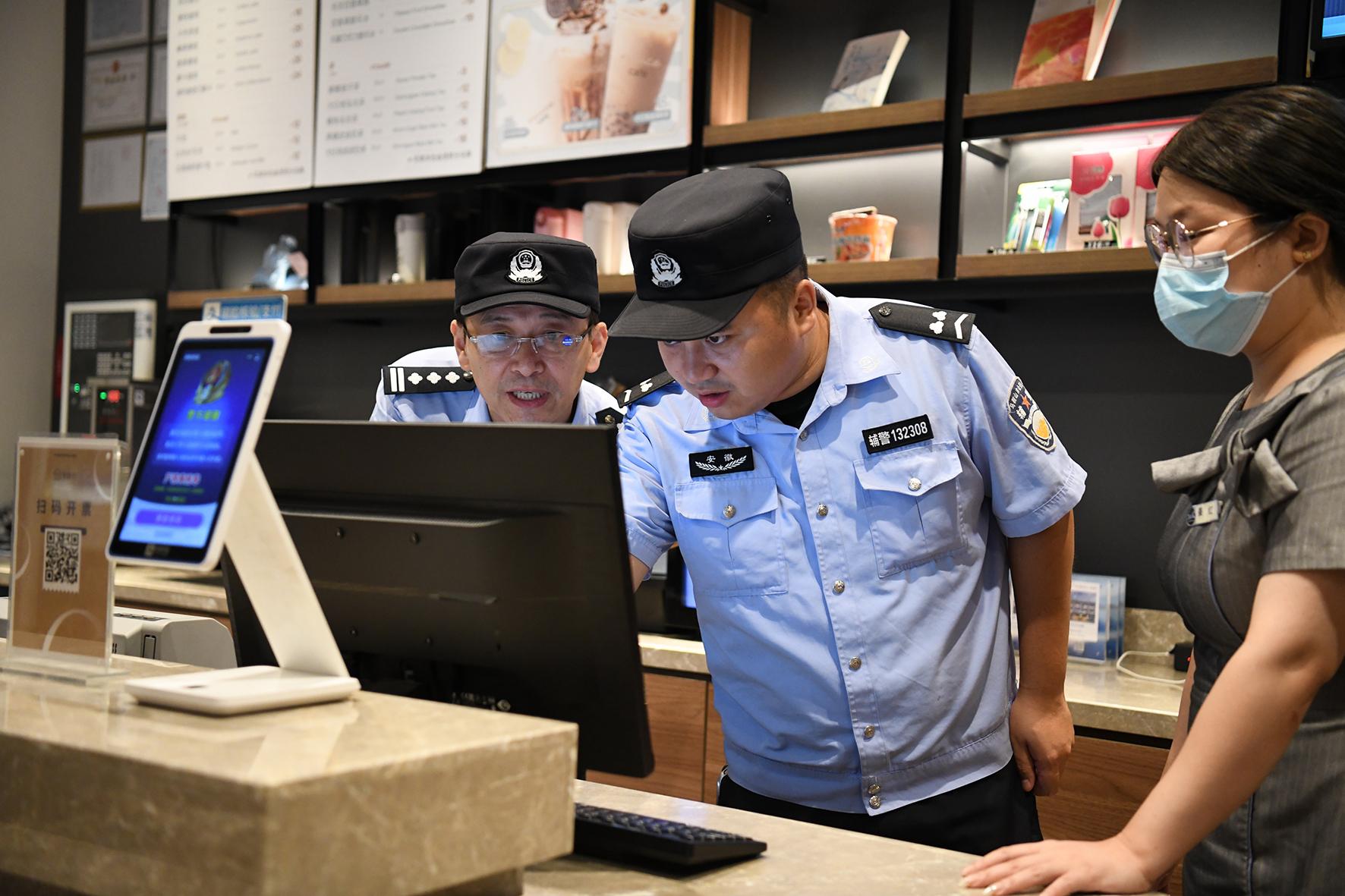 7月9日晚,安徽省馬鞍山市和縣公安局民警正在對(duì)歌廳、網(wǎng)吧等行業(yè)場(chǎng)所開(kāi)展檢查,及時(shí)發(fā)現(xiàn)并消除治安隱患。