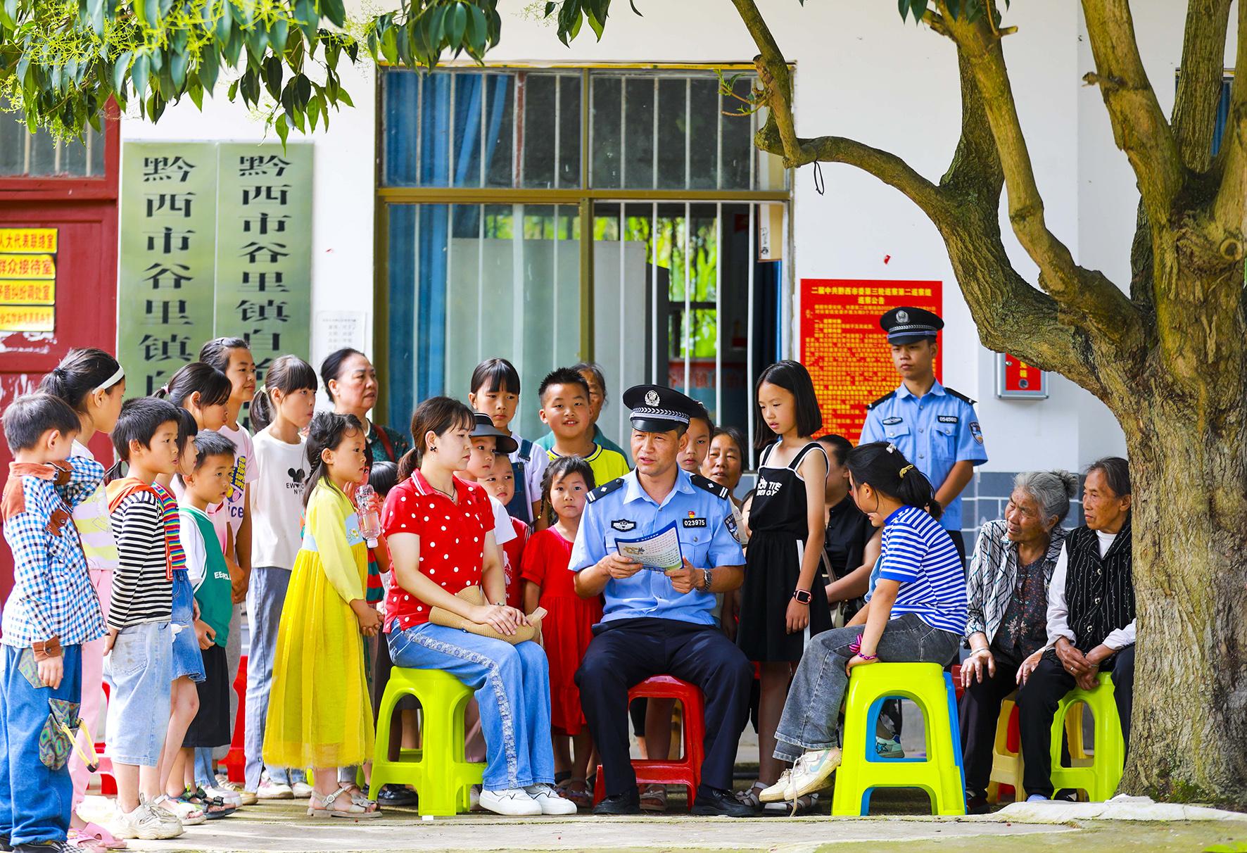 7月15日,貴州省黔西市公安局谷里派出所民警在谷里鎮(zhèn)自治村開展“法治宣傳進(jìn)鄉(xiāng)村”活動(dòng),向山區(qū)群眾宣講預(yù)防養(yǎng)老詐騙、禁毒知識(shí)、防火、防盜等,提升群眾的安全防范意識(shí)。