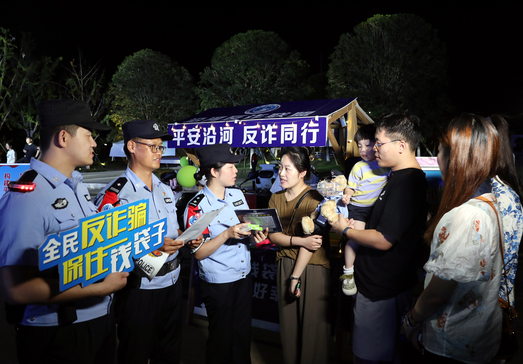 8月19日晚,江蘇省寶應(yīng)縣公安局組織青年民警走進(jìn)轄區(qū)生態(tài)體育休閑公園開展“反詐夜市”宣傳活動(dòng)。