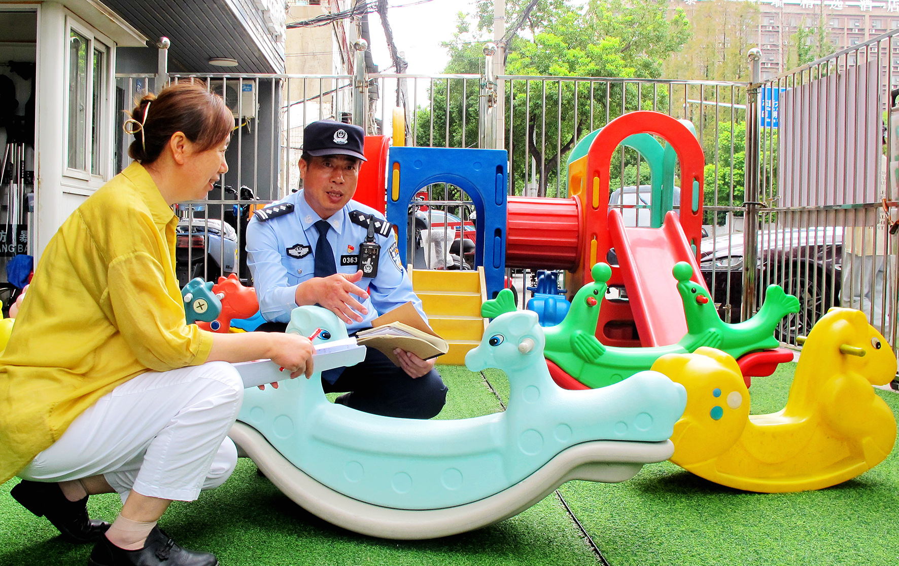 8月28日,湖北省武漢市公安局東西湖區(qū)分局長青街派出所華星社區(qū)警務(wù)室民警對轄區(qū)幼兒園及學(xué)校設(shè)施進行安全隱患排查和清理。