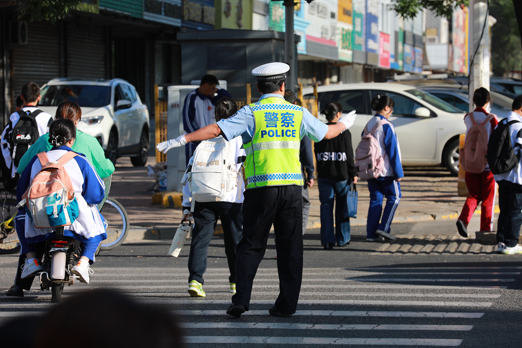 8月30日,遼寧省阜新市公安局交警支隊(duì)細(xì)河交警大隊(duì)民警在護(hù)學(xué)崗執(zhí)勤。