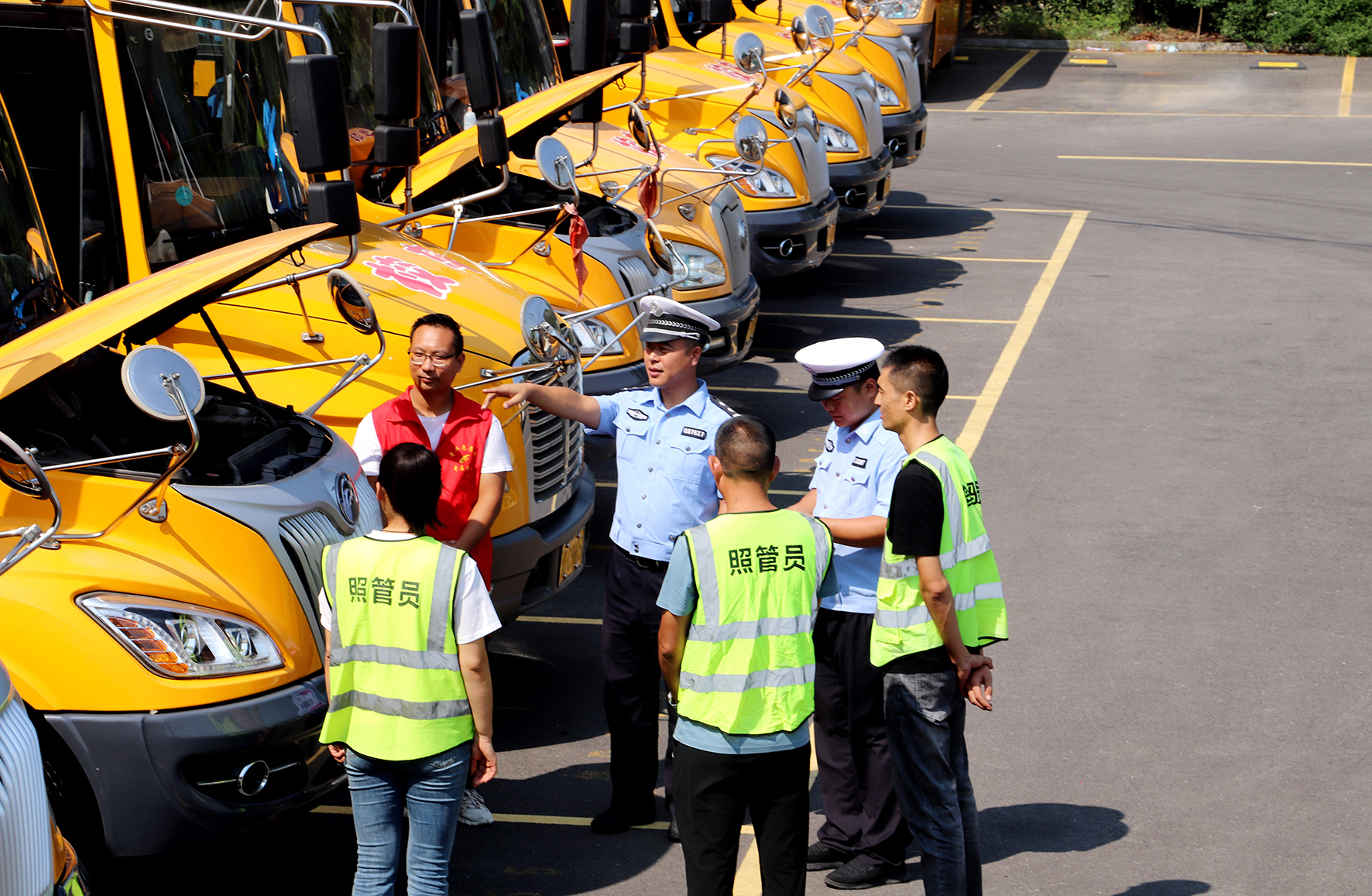 8月30日,山東省棗莊市公安局嶧城分局交警大隊(duì)民警與技術(shù)人員在對轄區(qū)校車進(jìn)行安全檢查。