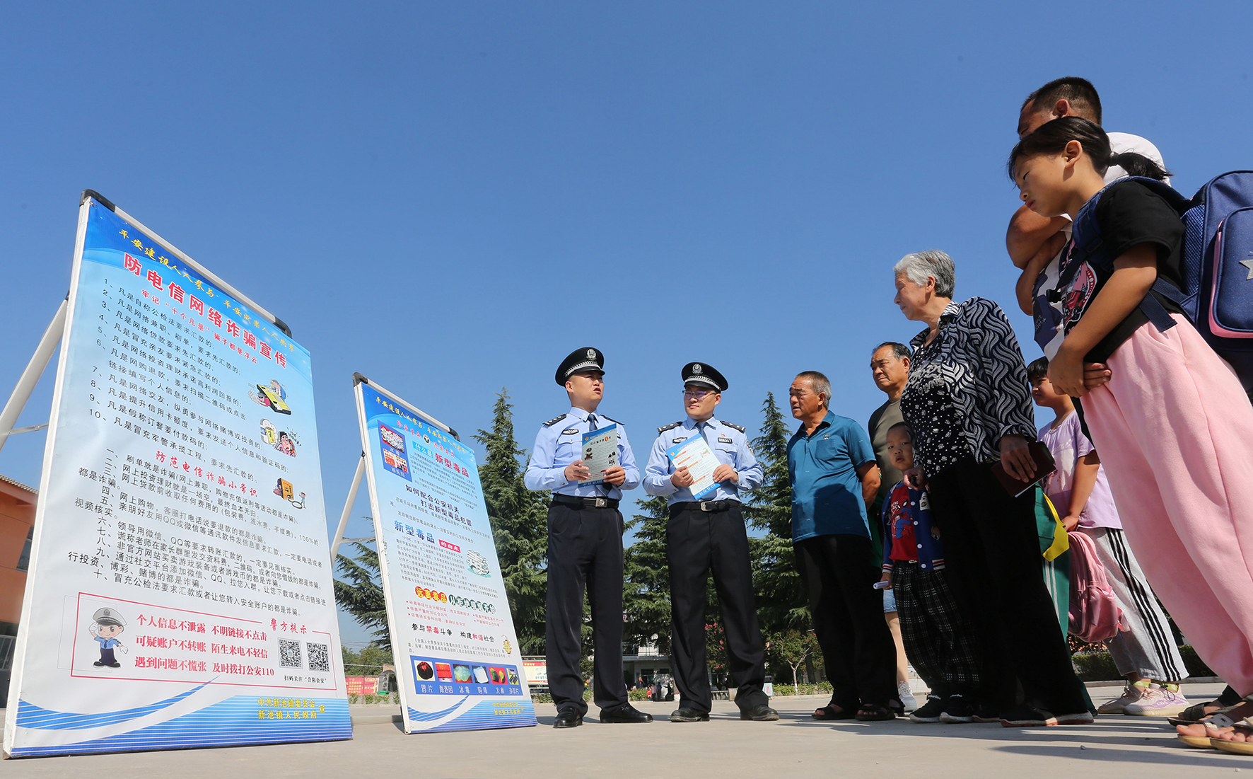 8月31日,陜西省渭南市合陽縣新池鎮(zhèn)中心小學(xué),民警向?qū)W生和家長講解電信詐騙的危害。