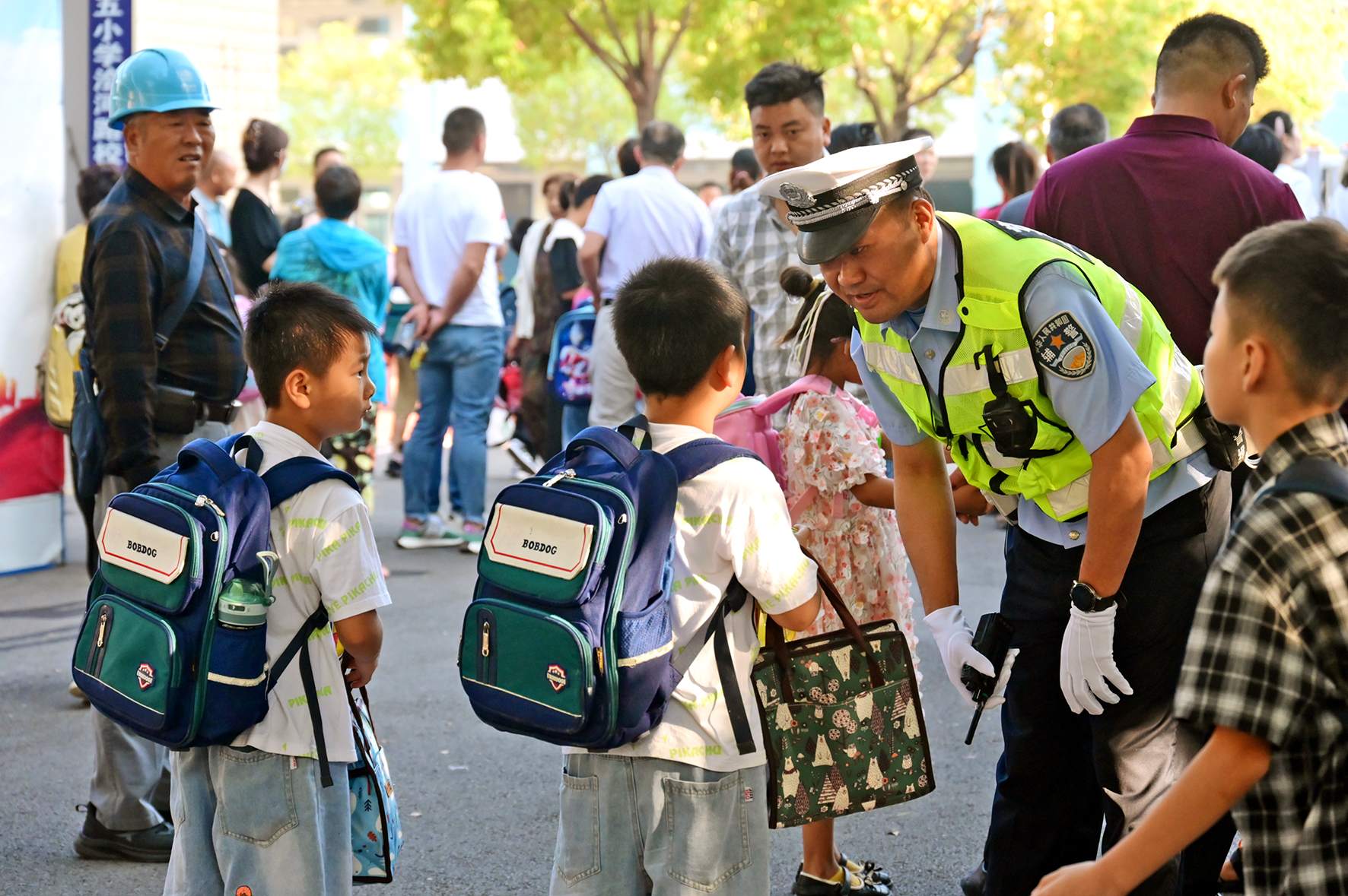 9月1日,山東省棗莊市公安山亭分局交警大隊(duì)民警走進(jìn)山亭區(qū)第二實(shí)驗(yàn)小學(xué)開展“交通安全第一課”宣傳活動(dòng)。