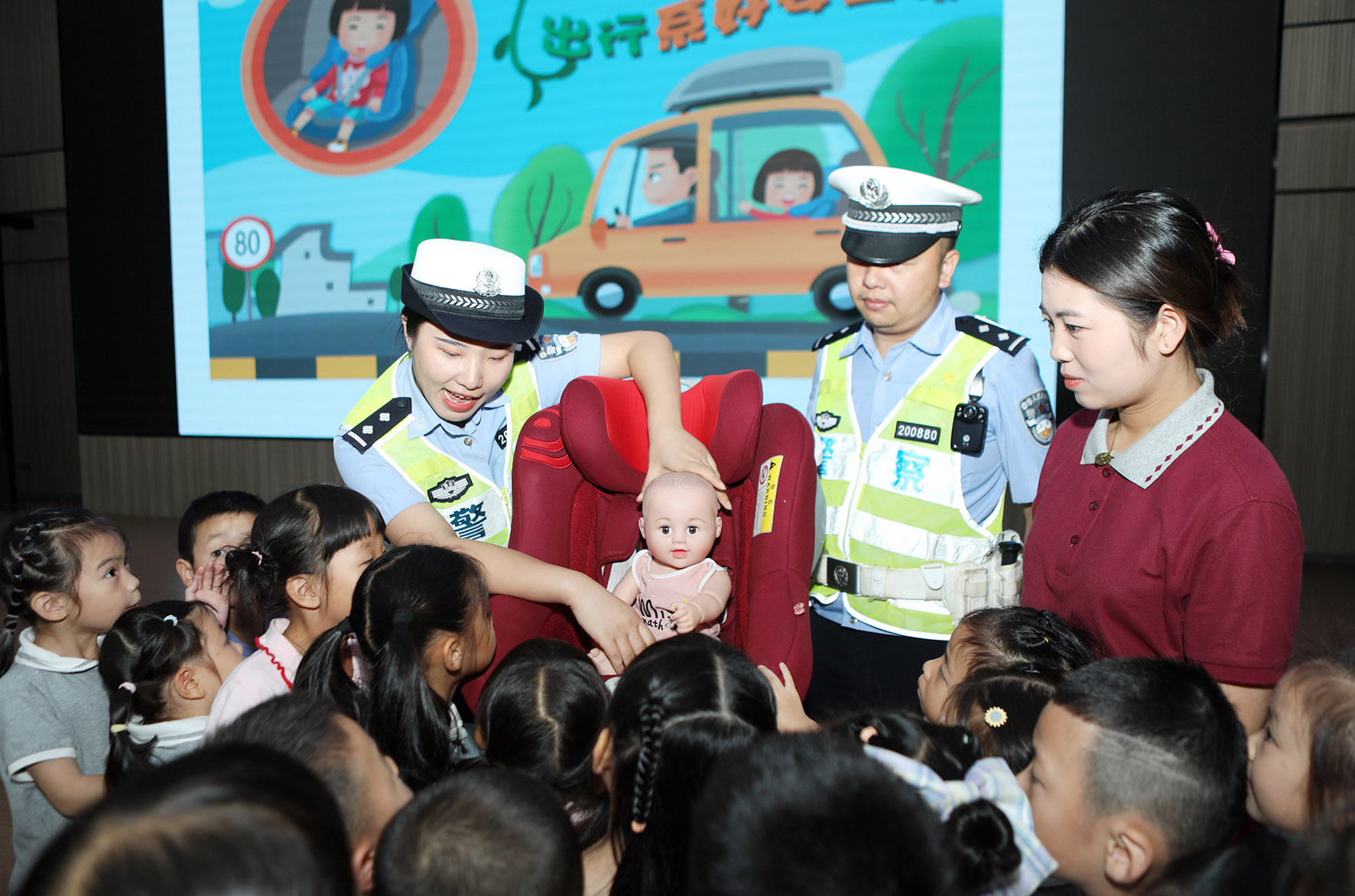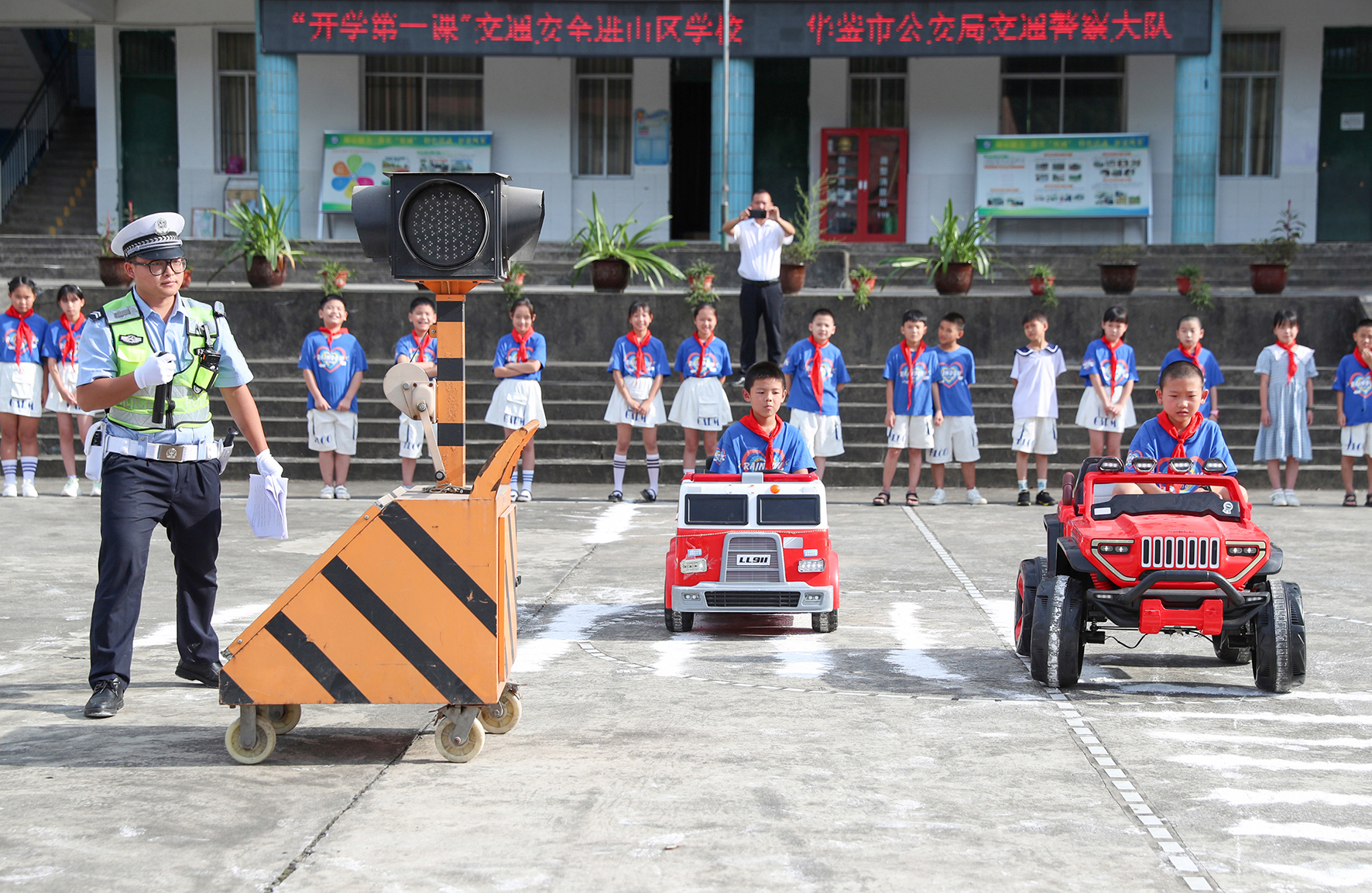 9月1日, 四川省華鎣市公安局交通警察大隊(duì)組織民警, 攜帶紅綠燈具、模型車、交通安全標(biāo)識(shí)牌等來(lái)到天池鎮(zhèn)小學(xué),開展體驗(yàn)式交通安全教育。