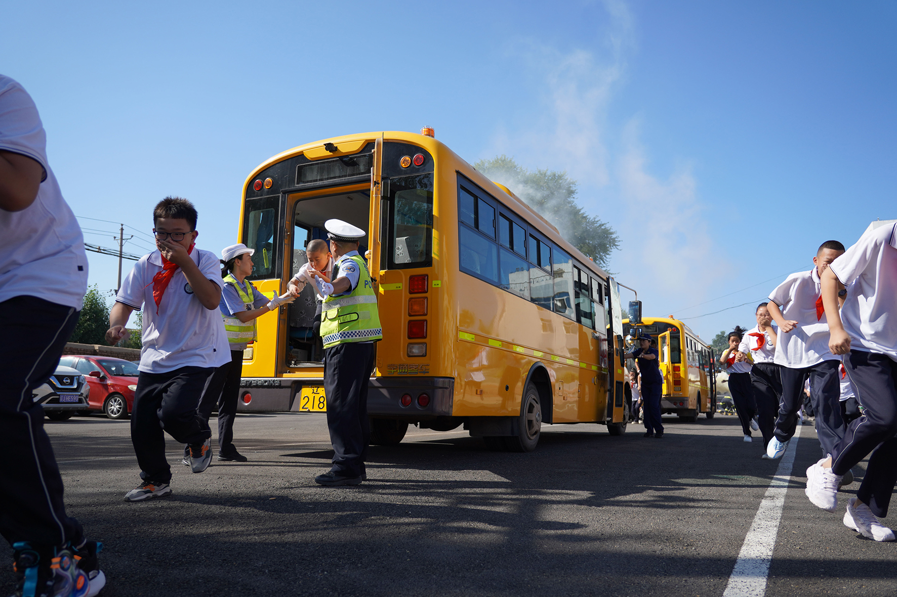 9月1日,開學(xué)第一天。遼寧省阜新市公安局交警支隊(duì)太平大隊(duì)聯(lián)合太平區(qū)消防大隊(duì)走進(jìn)阜新市城南小學(xué)開展“知危險(xiǎn) 會(huì)避險(xiǎn)”校車自燃事故應(yīng)急演練活動(dòng)。