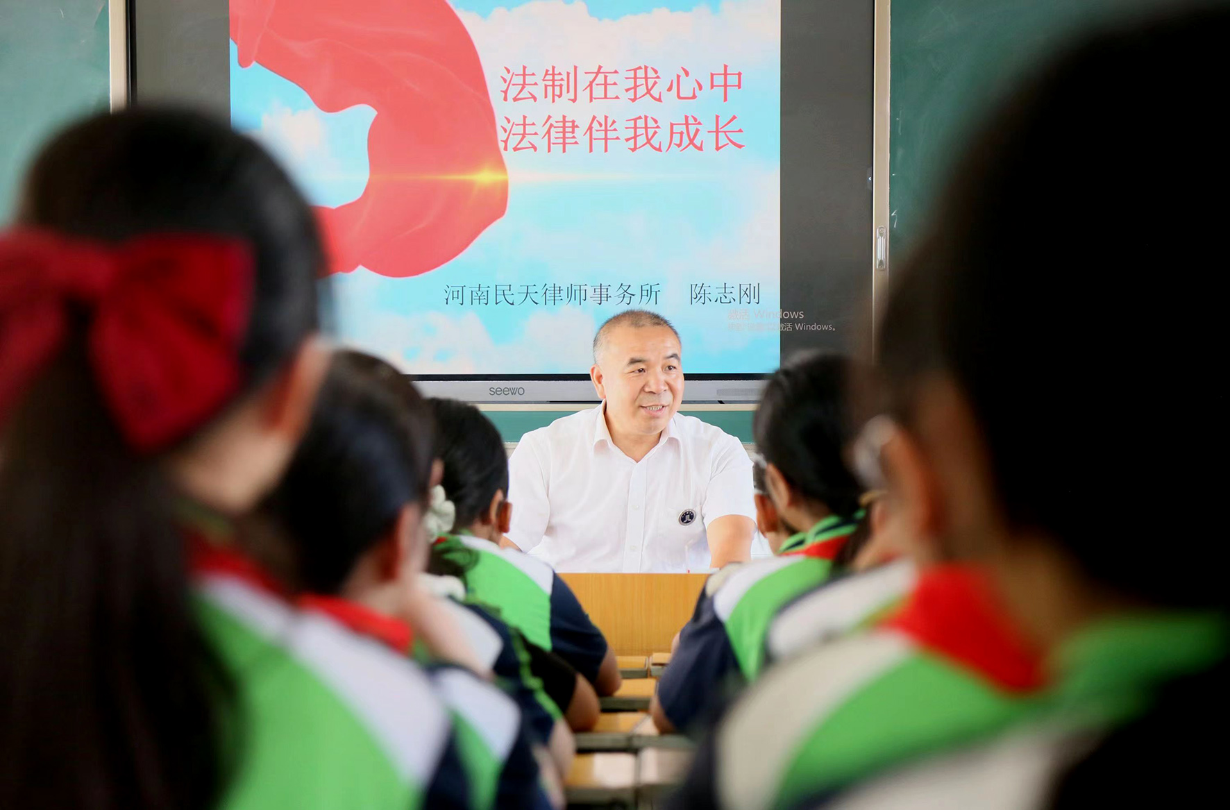 9月4日,河南省洛陽市汝陽縣人大代表、河南民天律師事務(wù)所律師陳志剛給汝陽縣第二實驗小學(xué)的學(xué)生們上法律課,引導(dǎo)同學(xué)們運用法律保護(hù)自己合法權(quán)益,確保不受侵害。
