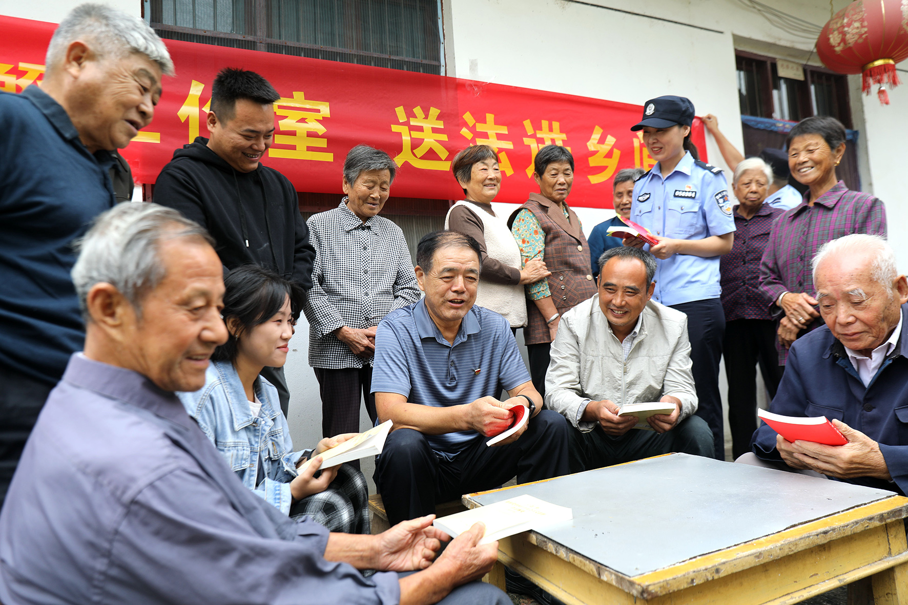 9月22日,安徽省舒城縣公安局杭埠派出所“老吳調(diào)解工作室”吳修富攜同駐村民警來(lái)到轄區(qū)河南村,向村民開展法治宣傳。今年66歲的吳修富是一名退休民警,被派出所特聘為調(diào)解工作室調(diào)解員,負(fù)責(zé)派出所疑難復(fù)雜矛盾糾紛調(diào)處。“老吳調(diào)解工作室”是全縣首個(gè)以個(gè)人名義命名的警民聯(lián)調(diào)室,遇事開展調(diào)解空閑時(shí)間下鄉(xiāng)普法。