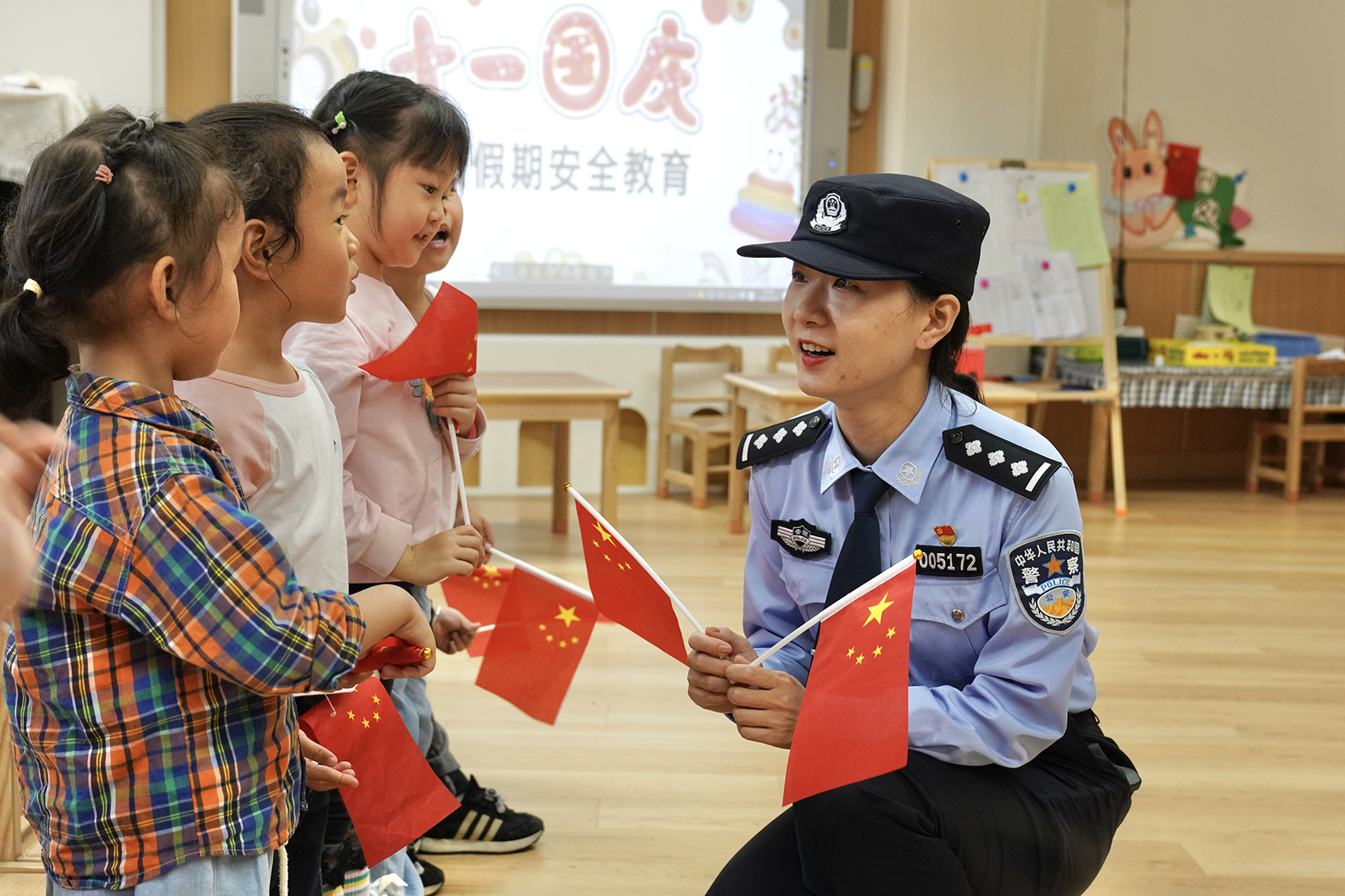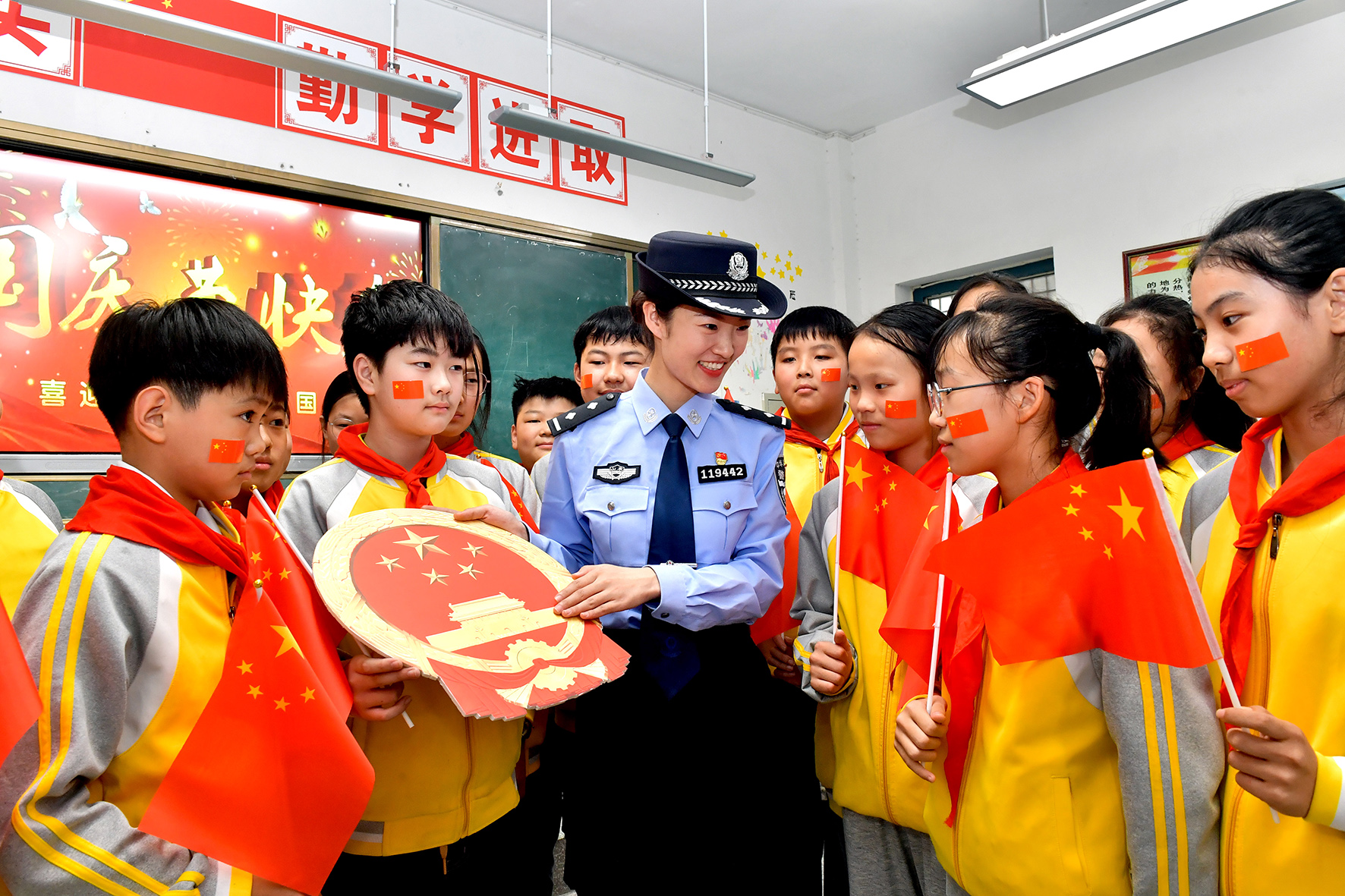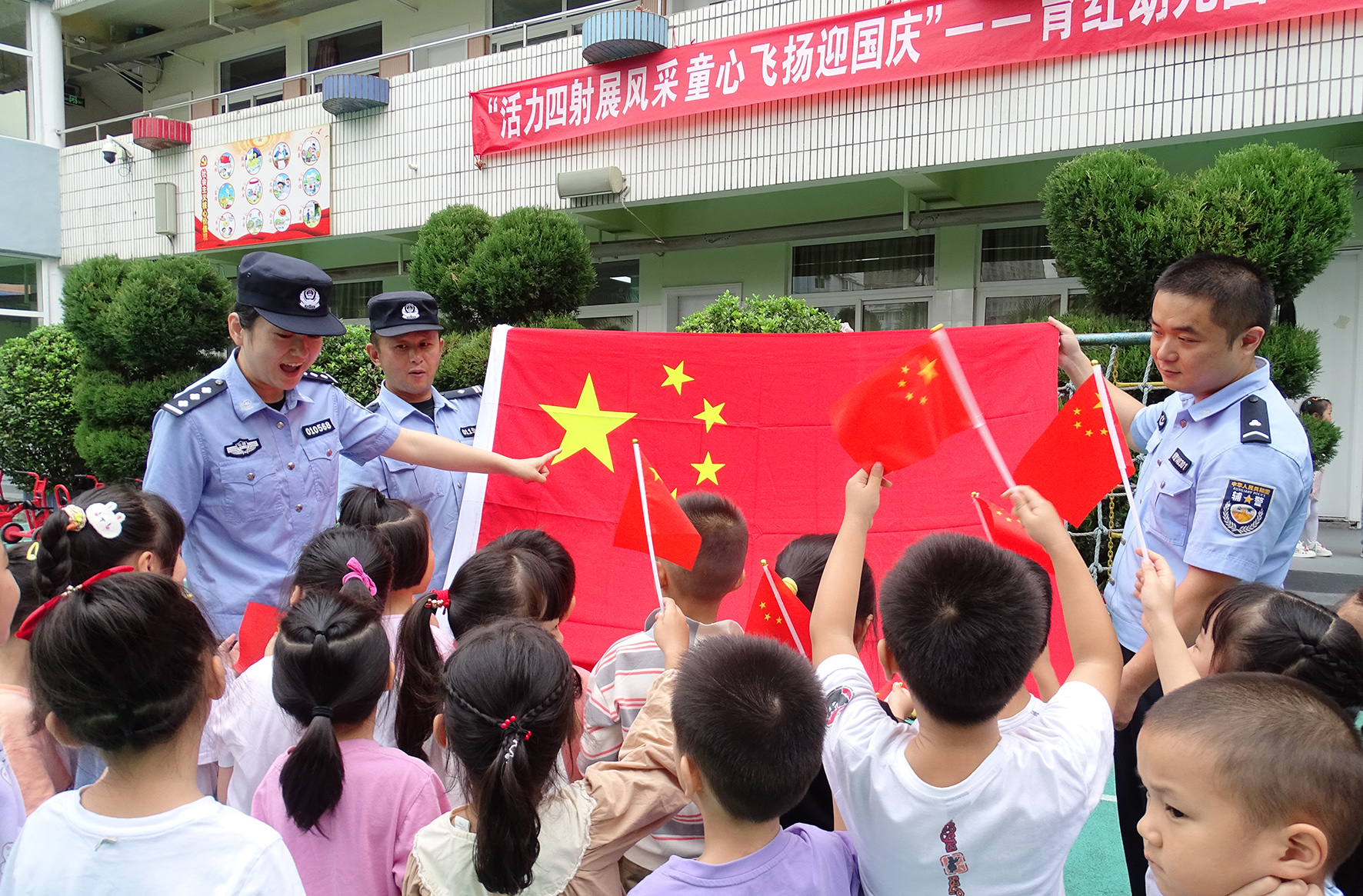 9月27日,安徽省合肥市公安局瑤海分局龍崗派出所民警輔警走進(jìn)轄區(qū)幼兒園開(kāi)展“我為祖國(guó)送祝福”主題教育活動(dòng)。