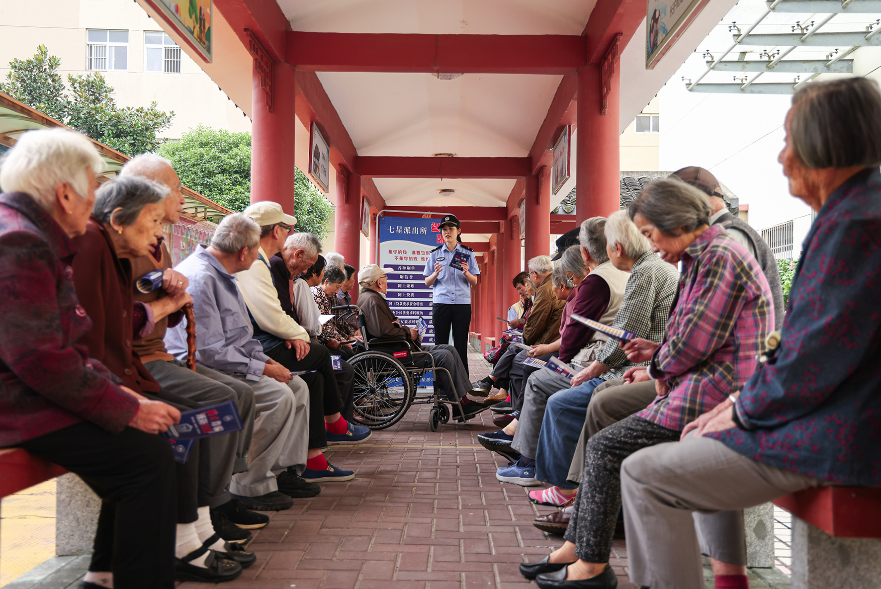 10月10日,浙江省嘉興市公安局南湖區(qū)分局七星派出所民警結(jié)合2023年全國“敬老月”活動(dòng),來到養(yǎng)老中心宣講反詐知識(shí),解答相關(guān)問題。