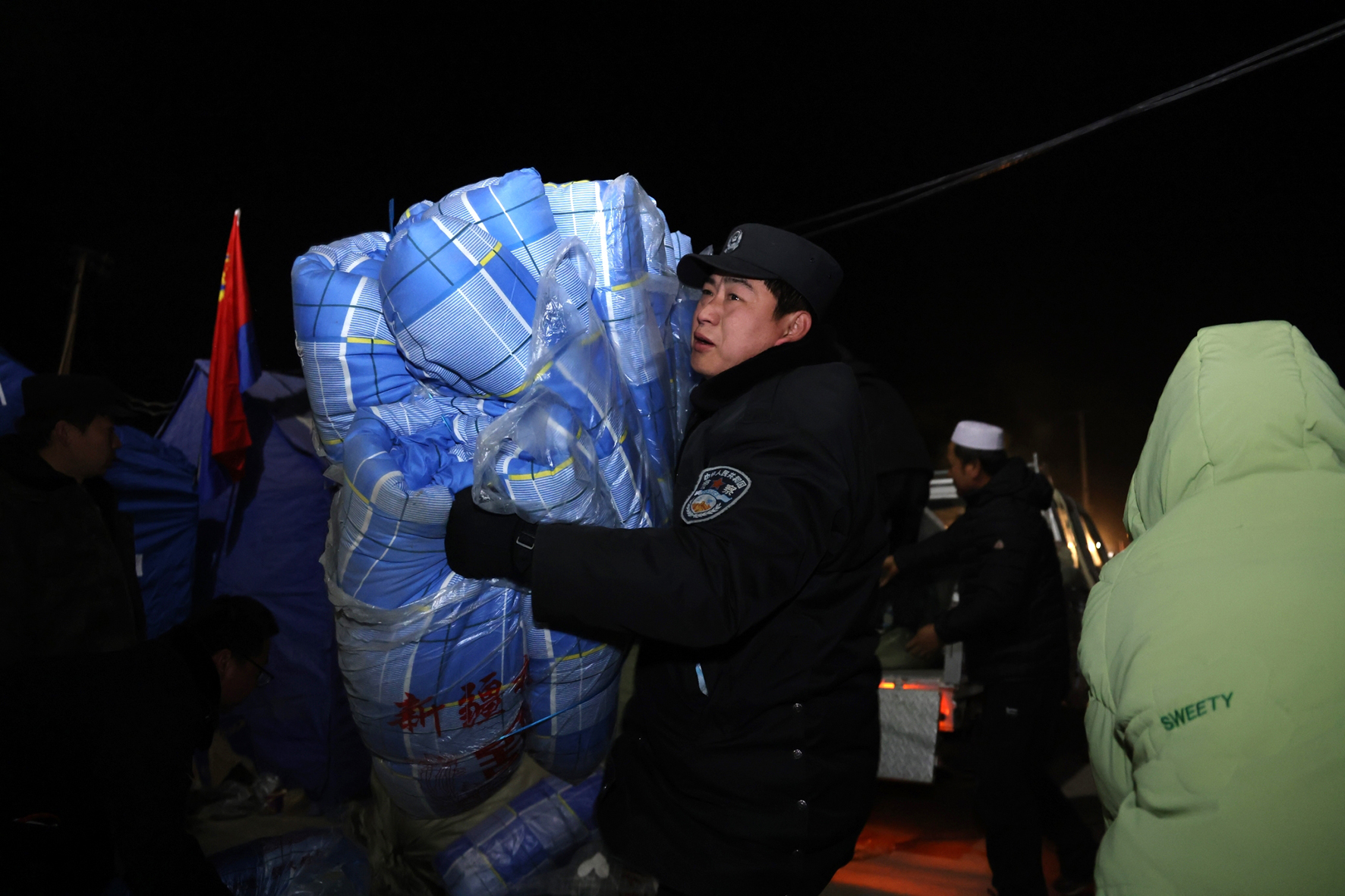 甘肅省臨夏州積石山縣發(fā)生6.2級地震后,東鄉(xiāng)縣公安局先后分兩批抽調(diào)120名警力趕赴地震災區(qū),全面參與群眾心理安撫、疏通保暢、轉(zhuǎn)移安置、物資分發(fā)、安置點秩序維護等工作,為災區(qū)群眾織起“安全網(wǎng)”。