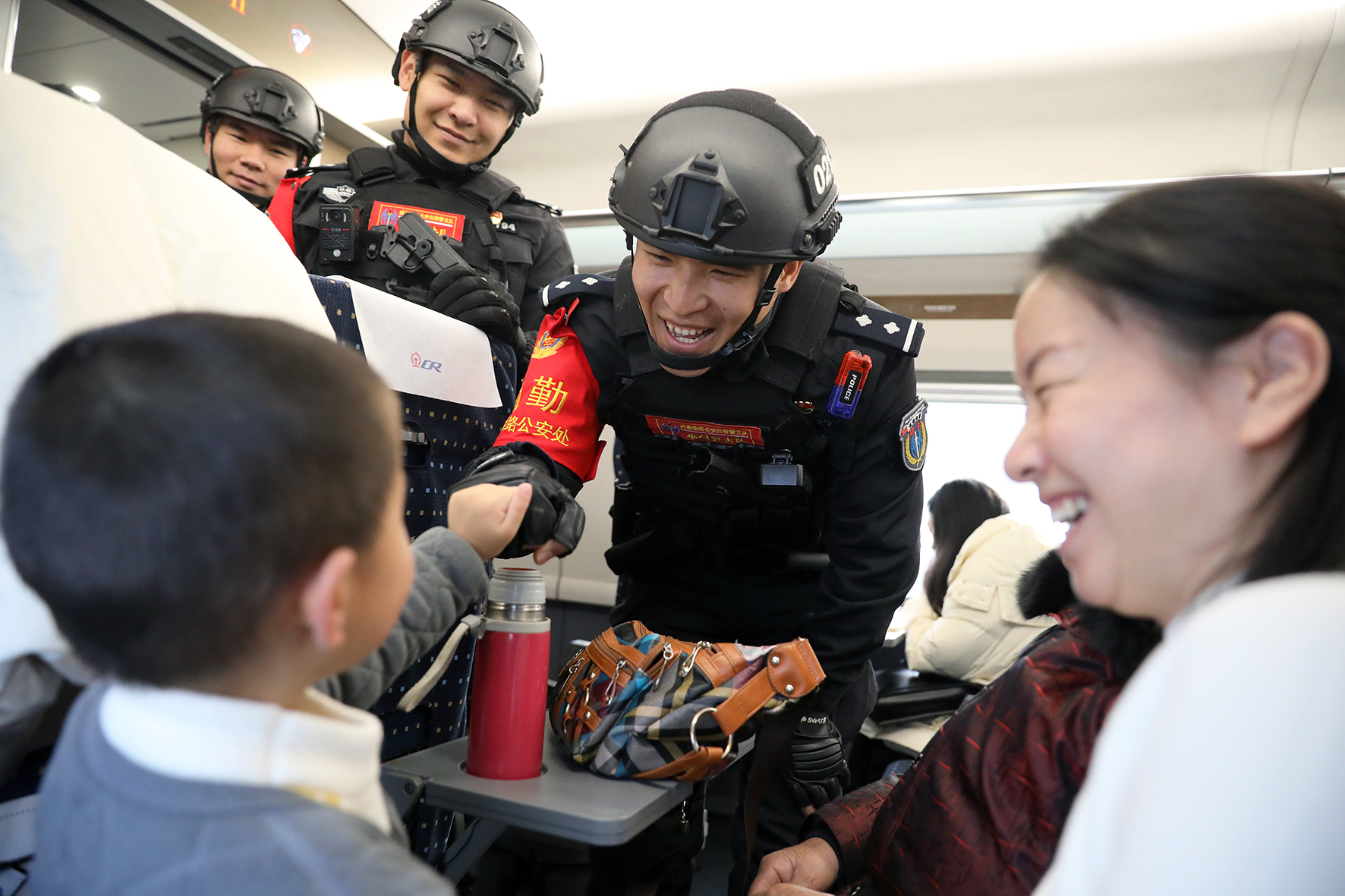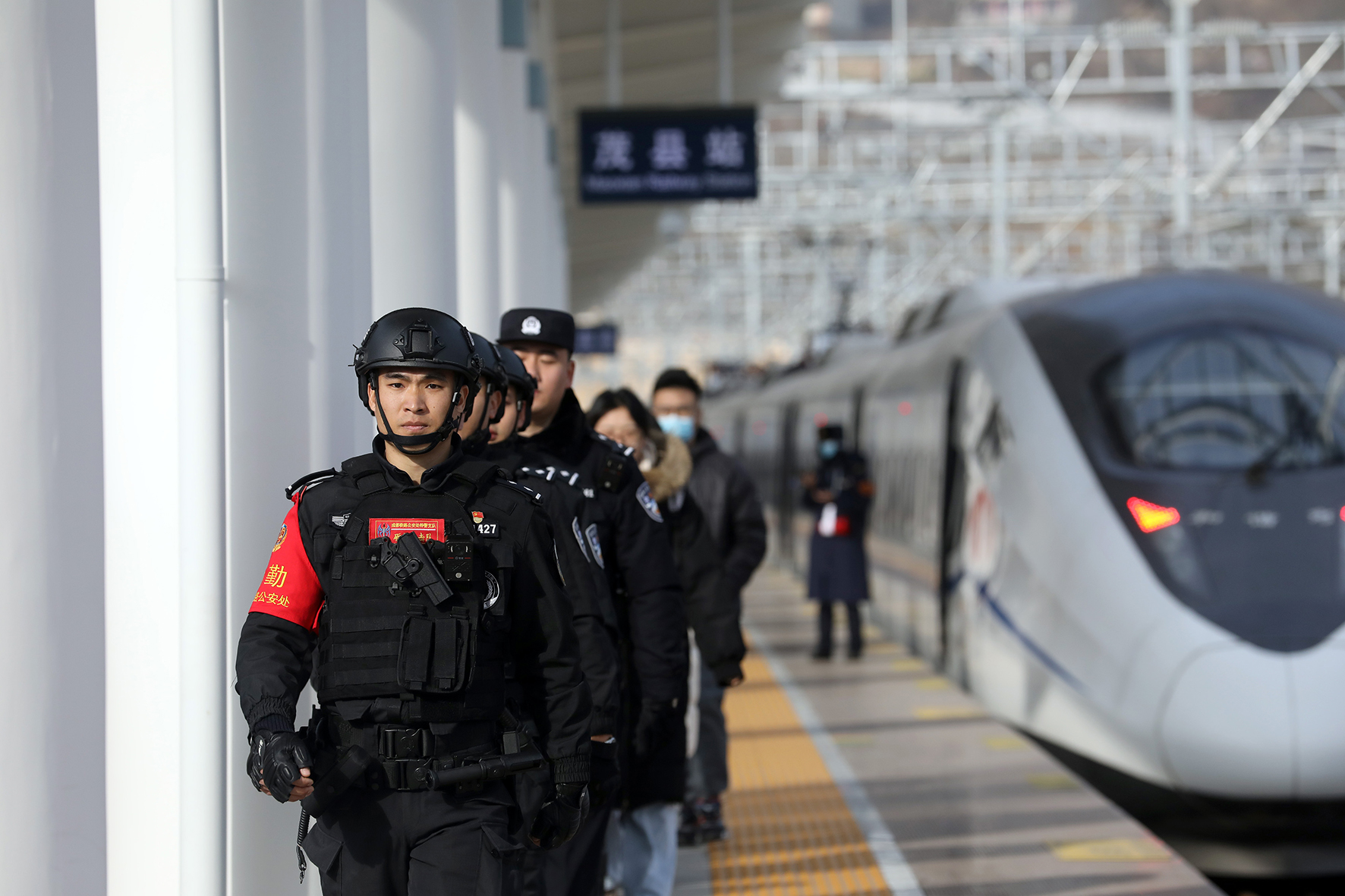 12月29日,在成都東開往茂縣的C6006次動車組列車上,一隊警容嚴整、精神飽滿的特警隊員格外引人注目,他們是成都鐵路公安處特警支隊民警,為旅客安全出行護航。