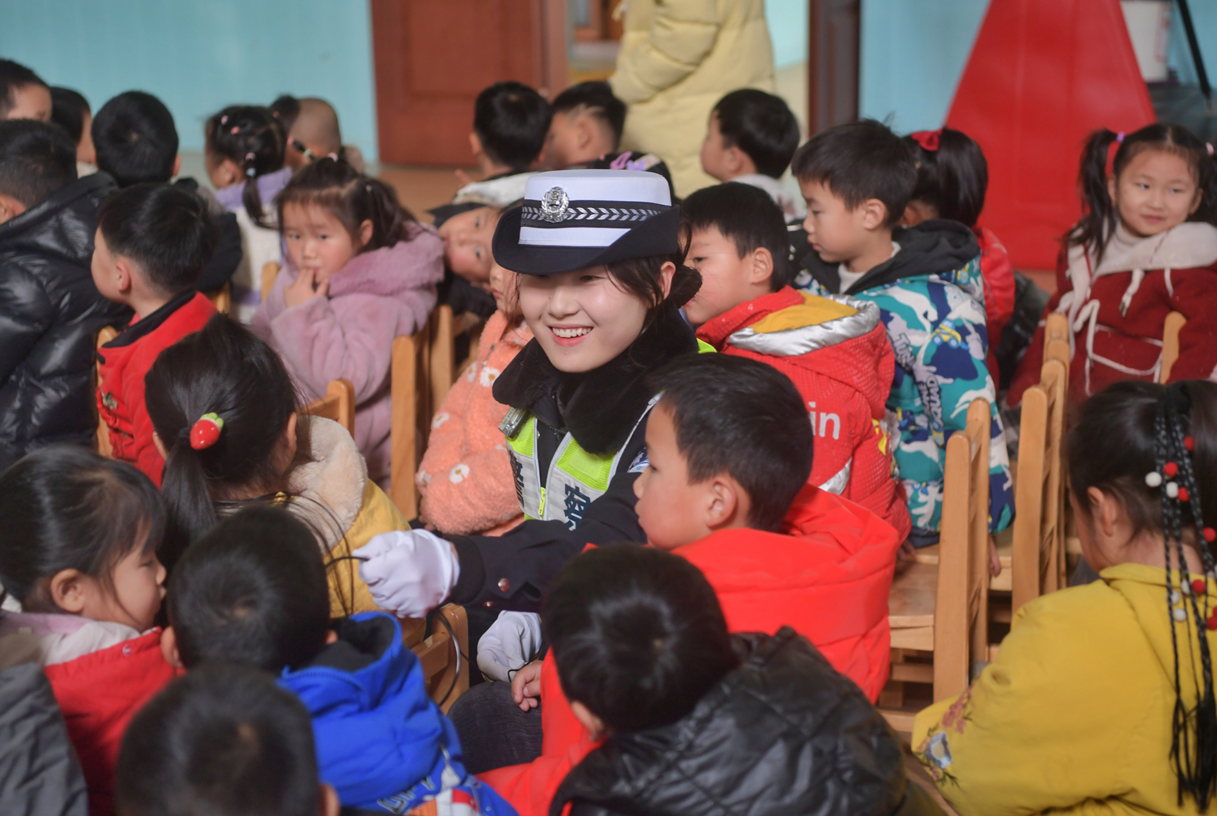1月9日,安徽省巢湖市公安局交警大隊民警走進轄區(qū)槐林鎮(zhèn)中心幼兒園,通過互動方式給小朋友們講解道路交通安全知識。