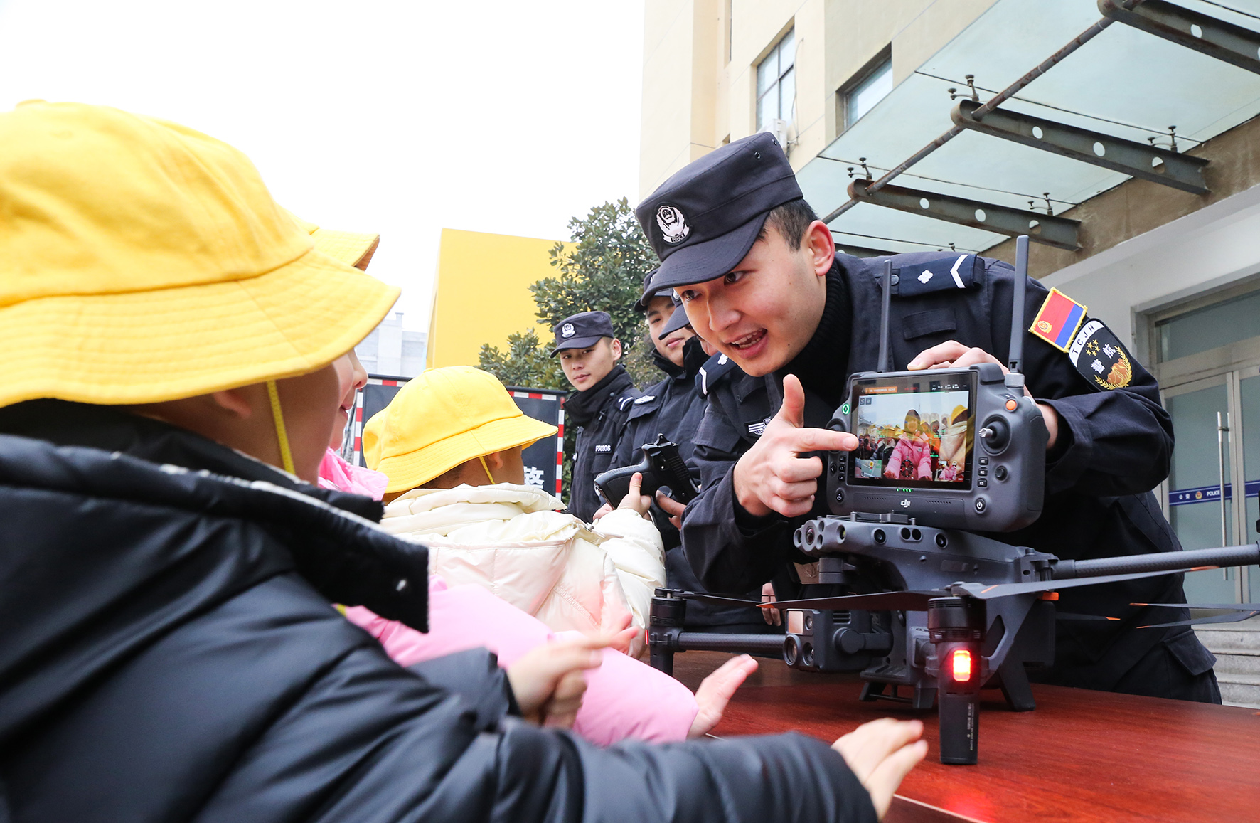 1月8日,貴州省赤水市公安局組織民警走進千藝幼兒園,讓小朋友們“零距離”體驗警用裝備。