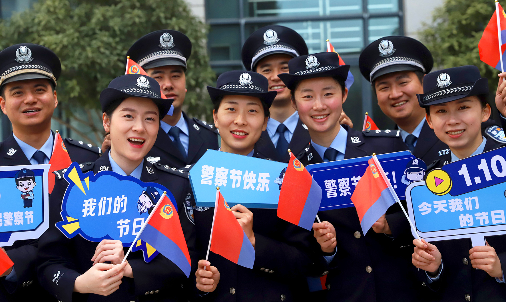 1月9日,浙江省臺州市公安局路橋分局組織民警開展向警旗敬禮、與警旗合影活動。