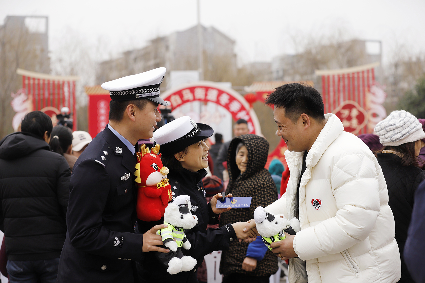 1月17日,安徽省蕪湖市公安局交警支隊高速二大隊民警走進弋江區(qū)白馬街道冬季“村晚”現(xiàn)場,通過“交通知識你來答‘熊熊’‘火火’過大年”活動,向廣大群眾宣傳“一盔一帶”、高速公路安全行車等交通安全知識,共迎“春運”,共祝平安。