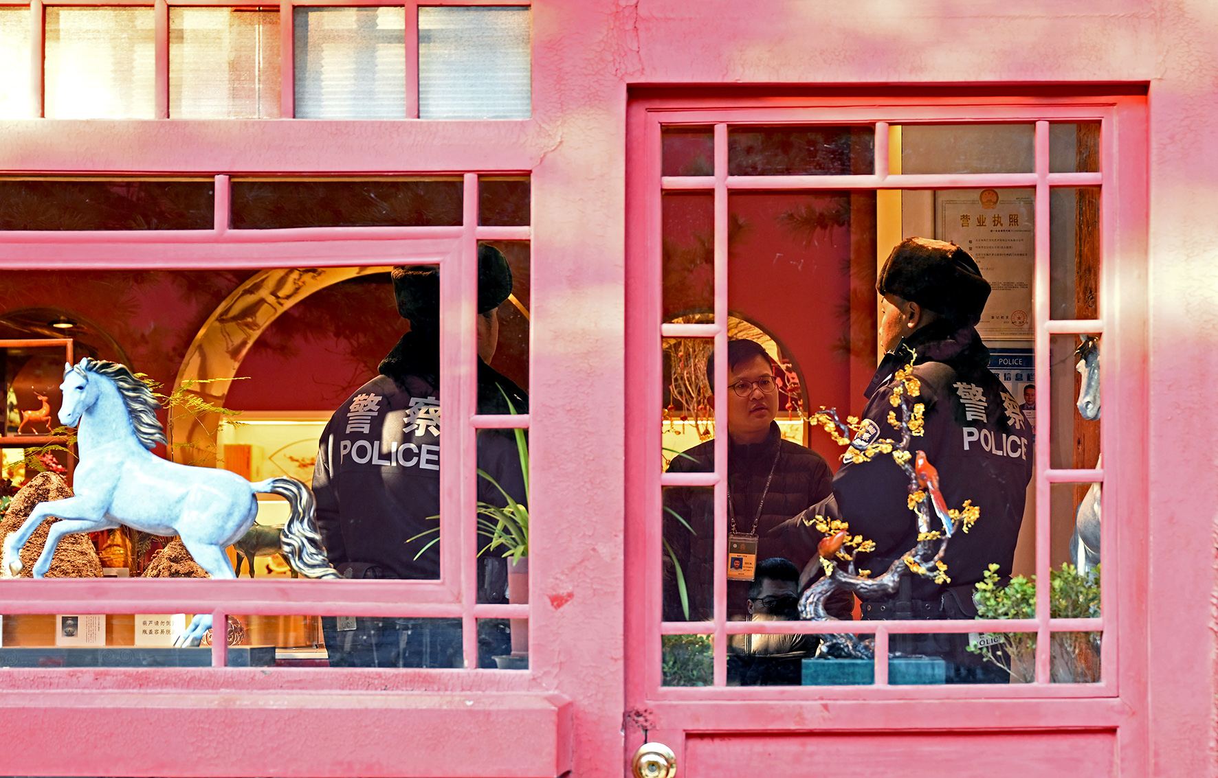 2021年,故宮派出所啟動格區(qū)警務(wù)改革,根據(jù)故宮院區(qū)防范重點劃分出8個不同的格區(qū),并選派15名業(yè)務(wù)骨干組成“格警”隊伍,進一步加大故宮重點地區(qū)的安全防范與服務(wù)力度。故宮派出所指導(dǎo)員朱欣欣介紹,“格警”們廣泛動員商戶店員、物業(yè)保安等力量,組建起220余人的安全員“紅袖標(biāo)”隊伍,打造出信息收集、防范打擊、服務(wù)群眾三位一體的工作平臺。他笑著說:“我們這個秘籍就是‘雙法寶’,線下按游客行進路線鉆研出‘堵門工作法’,線上還建立多個微信群,提高效率?!?/p>
