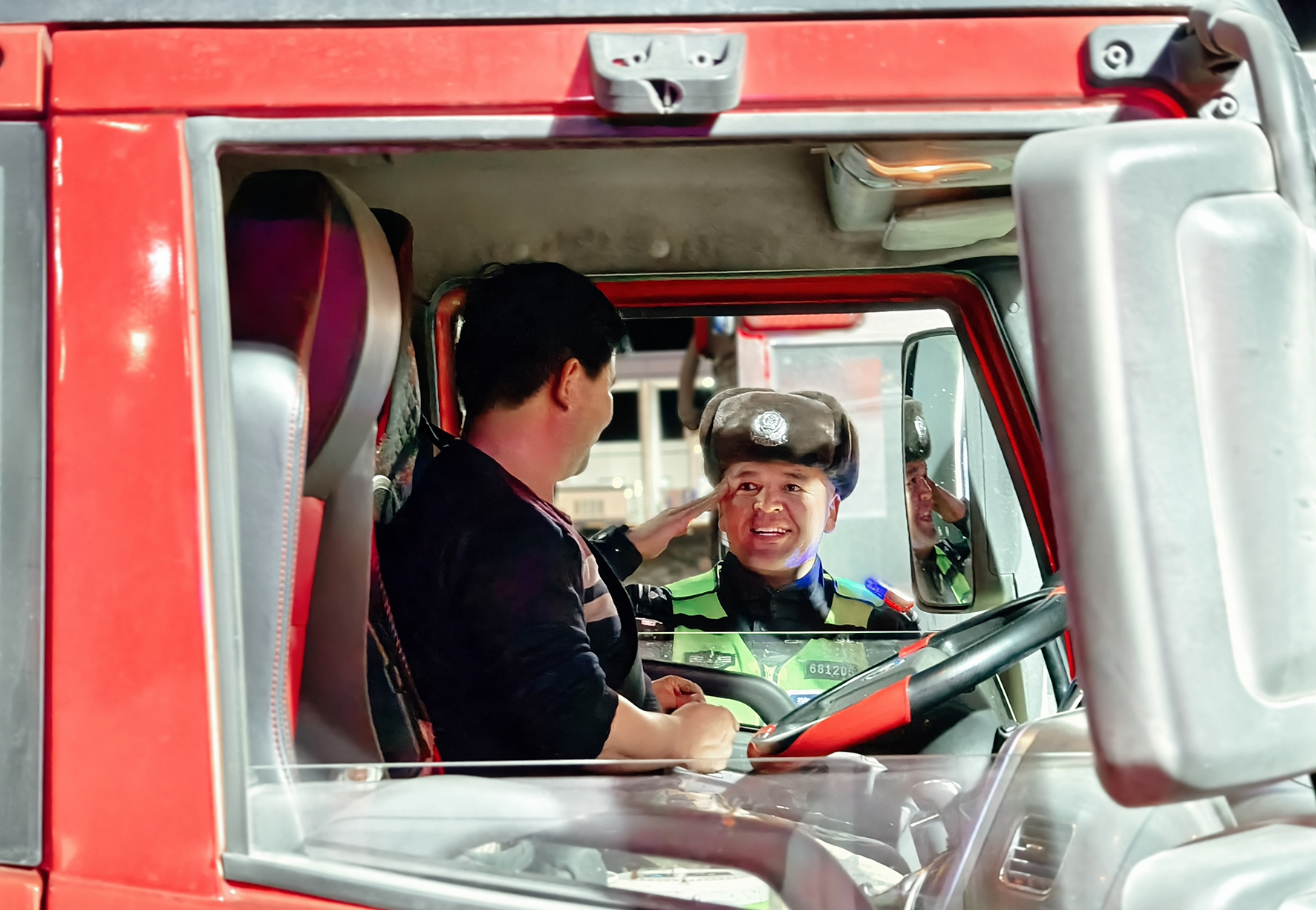 2月12日晚,新疆哈密邊境管理支隊(duì)白山泉邊境檢查站全體民輔警堅(jiān)守崗位,對(duì)過往車輛人員進(jìn)行檢查。