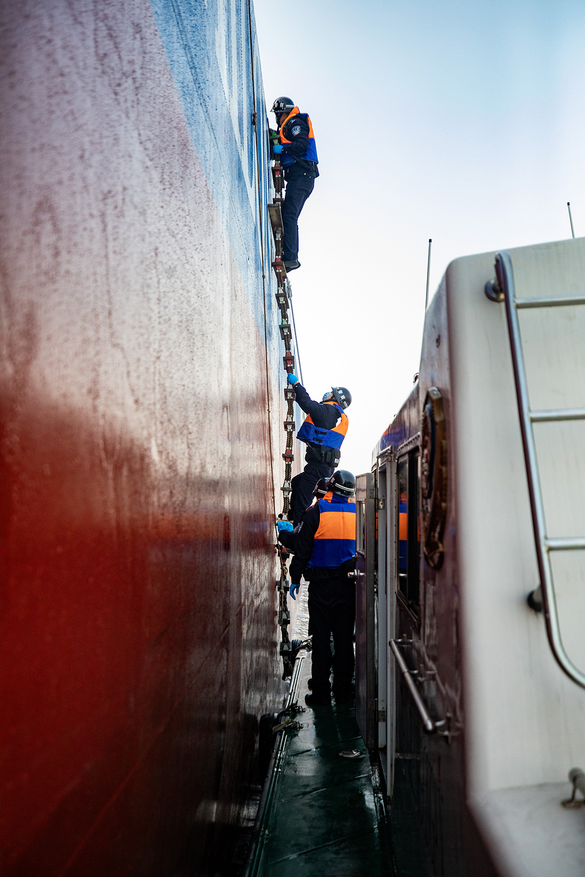 2月11日,長江航運(yùn)公安局鎮(zhèn)江分局聯(lián)合鎮(zhèn)江出入境邊防檢查站全力服務(wù)港口安全生產(chǎn),船舶快速通關(guān)。