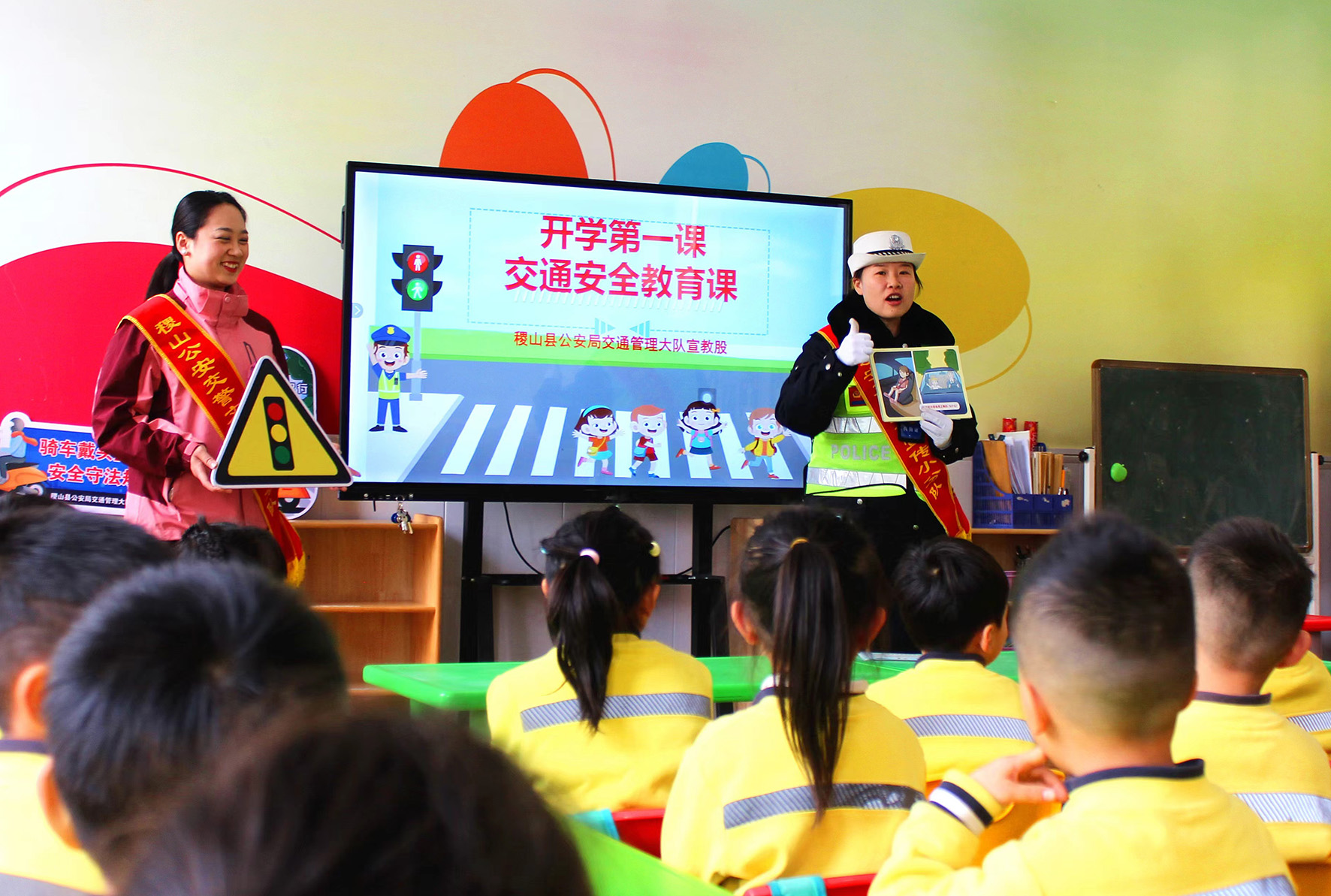 2月26日,山西省稷山縣公安局交通管理大隊民輔警走進轄區(qū)紅纓幼兒園,開展春季“開學(xué)第一課”交通安全宣傳活動。