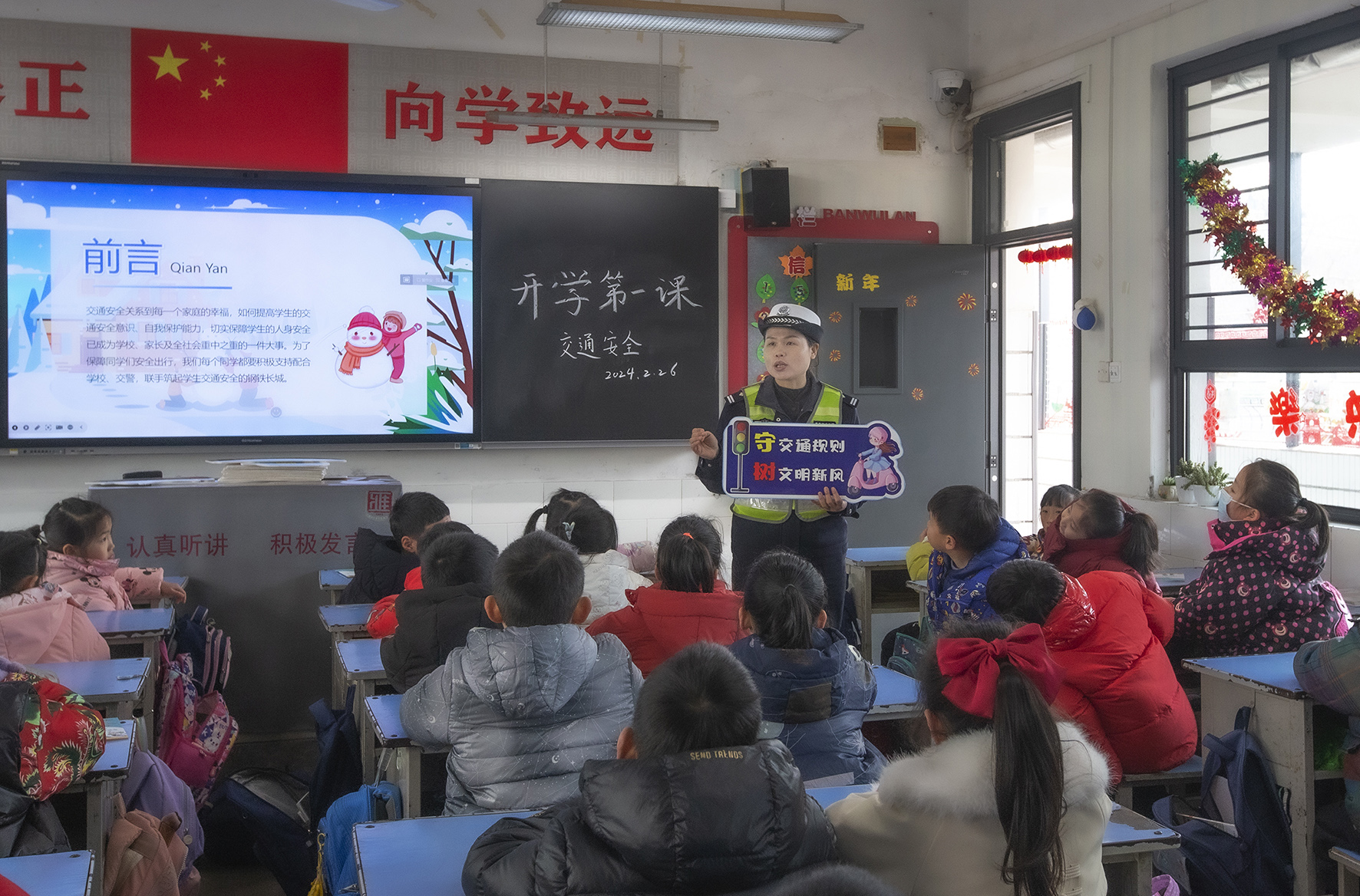 2月26日,四川省綿陽市公安局交警支隊直屬一大隊民警走進轄區(qū)校園開展“開學(xué)第一課”交通安全宣傳活動。