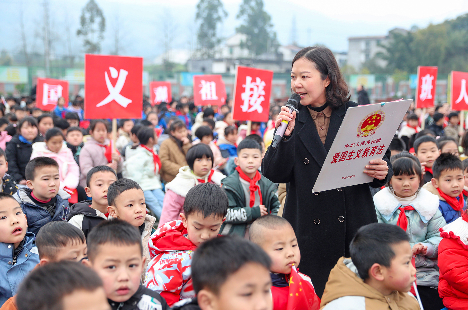 2月26日,四川省華鎣市委政法委、法學(xué)會和老年志愿者法治宣講團聯(lián)合組織的宣傳小分隊普法志愿者,為學(xué)生們宣講愛國主義教育法。