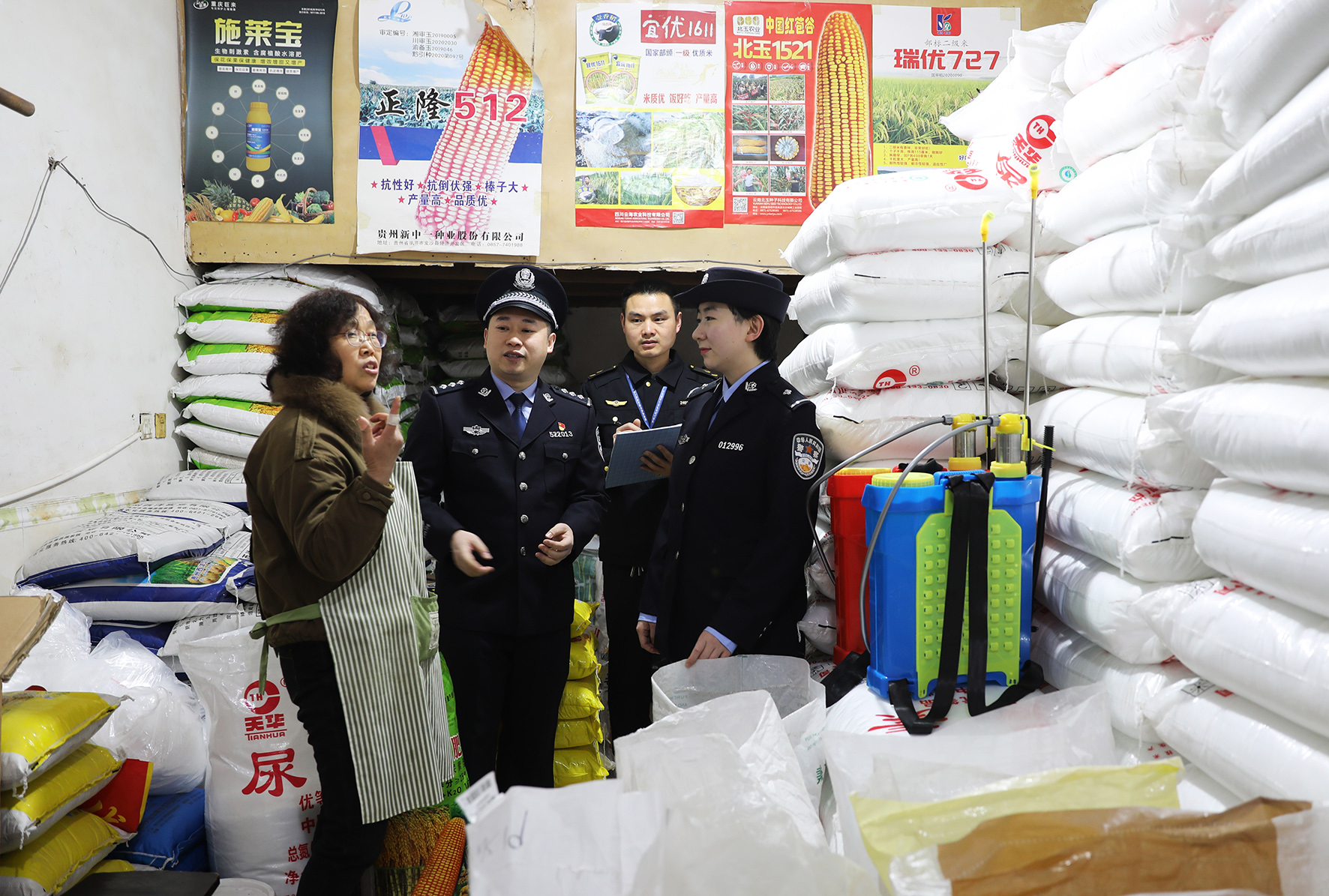 2月27日,貴州省赤水市公安局聯(lián)合市場(chǎng)監(jiān)督管理局開展“綠劍護(hù)農(nóng)”行動(dòng),對(duì)轄區(qū)市場(chǎng)銷售的種子、化肥、農(nóng)藥等農(nóng)資產(chǎn)品進(jìn)行拉網(wǎng)式檢查,打擊坑農(nóng)害農(nóng)違法行為,為春耕生產(chǎn)保駕護(hù)航。