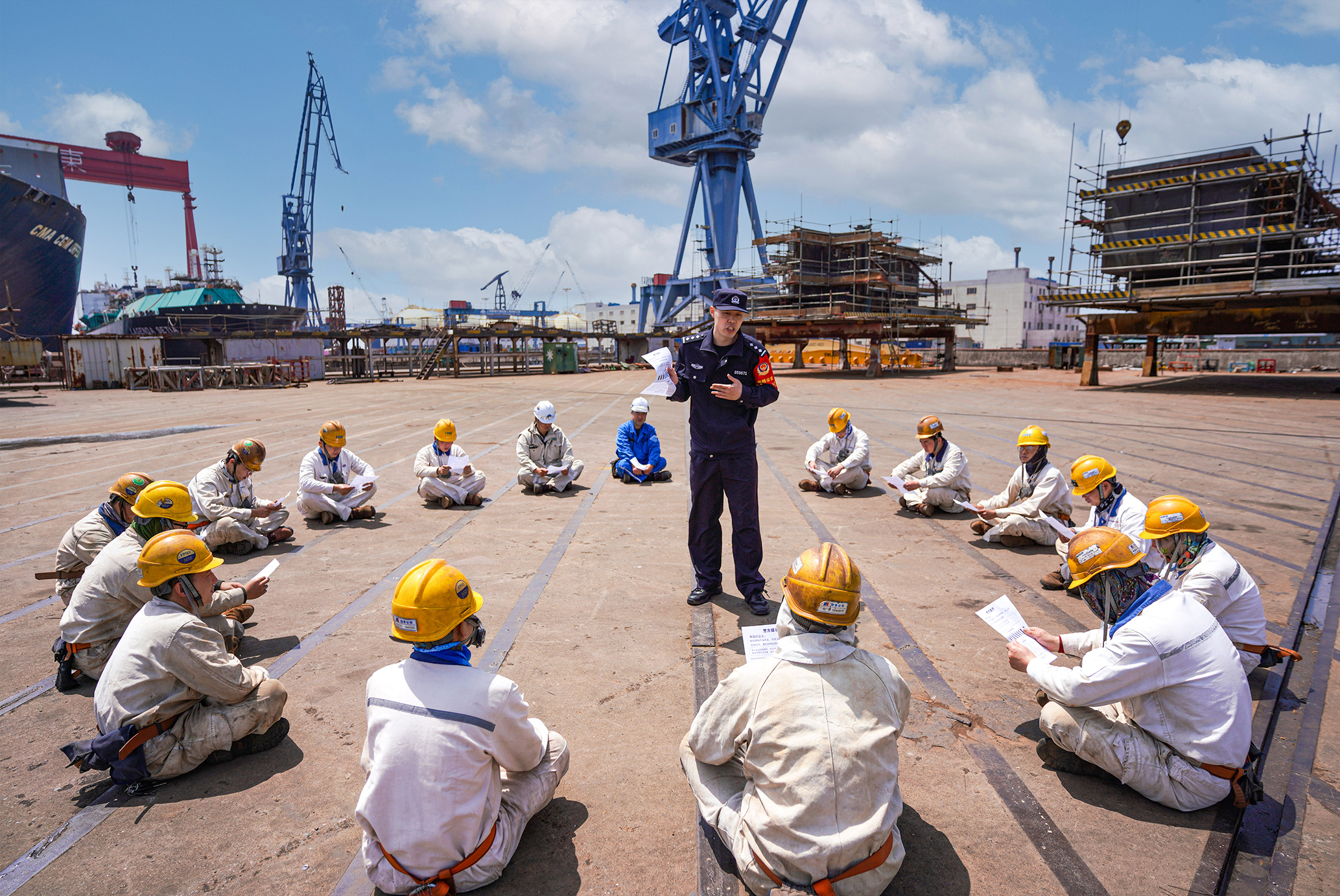 3月11日,上海市公安局崇明分局城橋派出所民警來到轄區(qū)船廠開展警企協(xié)作和反詐宣傳。