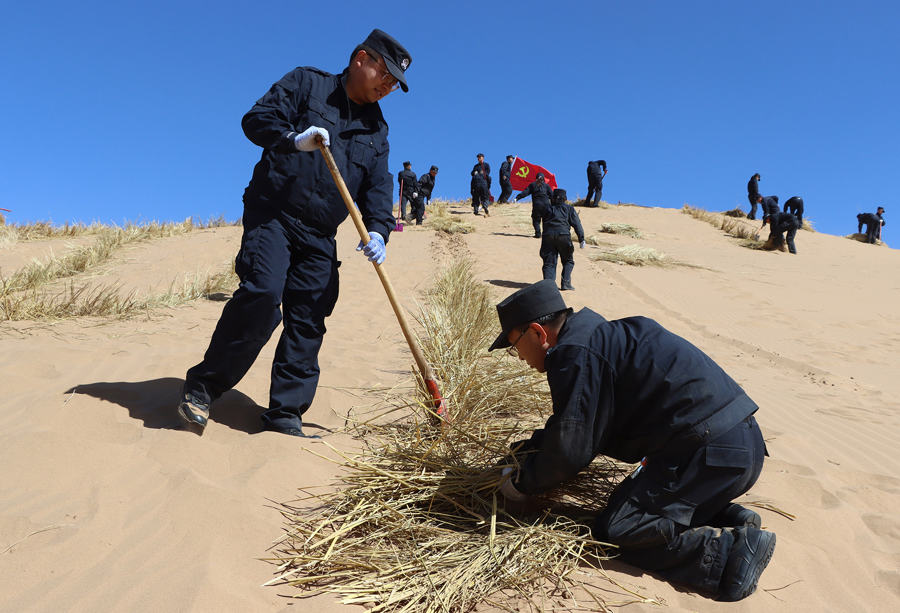 3月19日,甘肅省武威市古浪縣公安局積極響應(yīng)縣委、縣政府號(hào)召,組織各警種部門民輔警200余人,深入騰格里沙漠南緣、古浪縣北部頭道溝壓沙區(qū),開展全縣春季義務(wù)壓沙活動(dòng)。