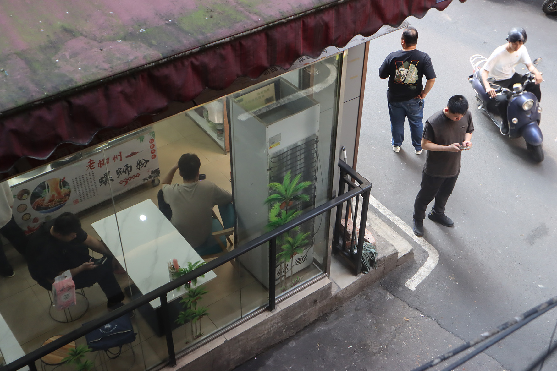 3月25日,市中區(qū)分局與廣西南寧警方辦案民警在蹲點(diǎn)守候期間輪流吃飯。