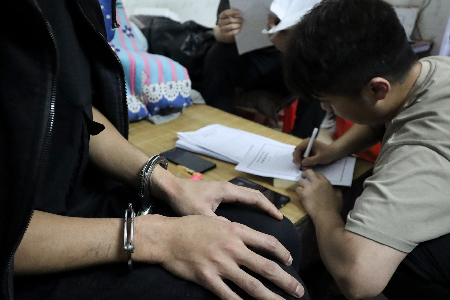 3月25日,民警將電詐嫌疑人張某抓獲,并對其當(dāng)場訊問。