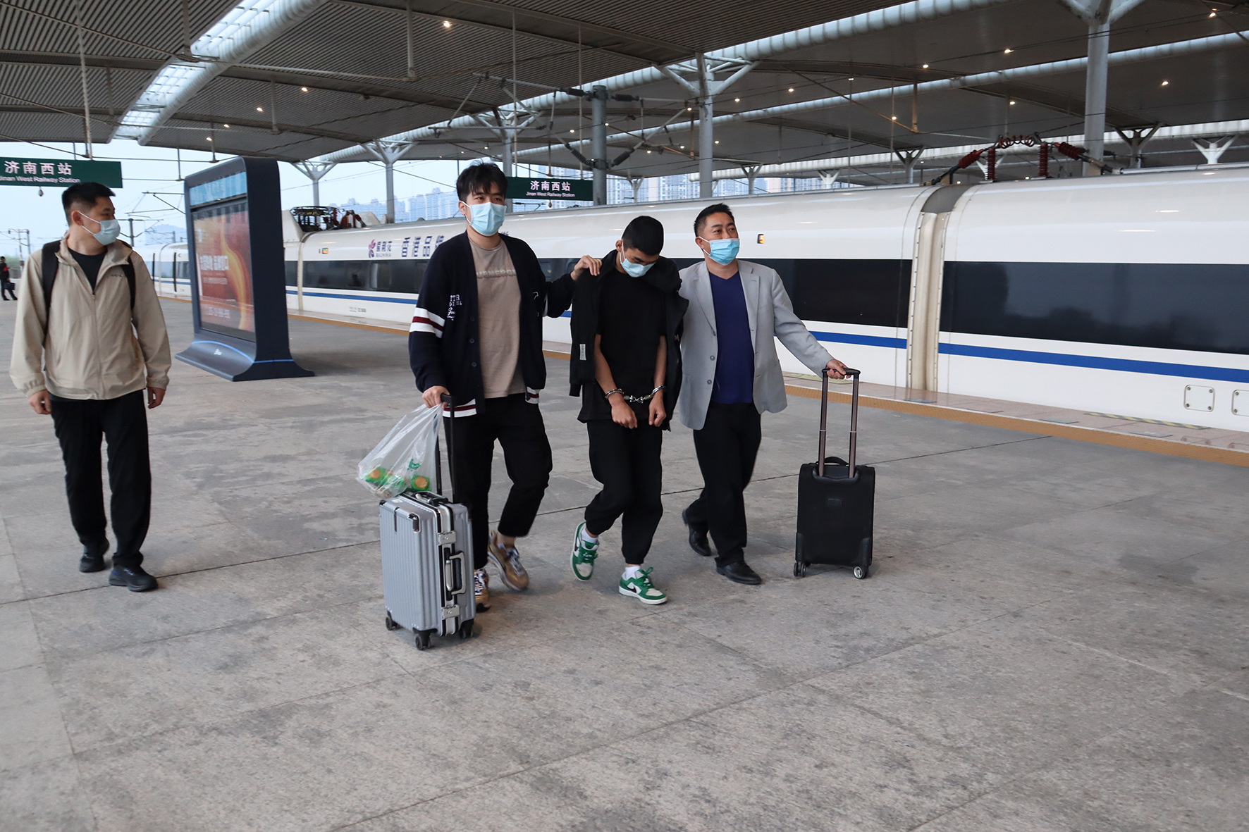 3月27日18時21分,從廣西南寧開往山東濟(jì)南的G436次高鐵緩緩駛進(jìn)濟(jì)南西站,濟(jì)南市公安局市中區(qū)分局辦案民警將網(wǎng)上詐騙43000余元的犯罪嫌疑人張某押下車。自此,一場持續(xù)三天的抓捕行動圓滿結(jié)束。