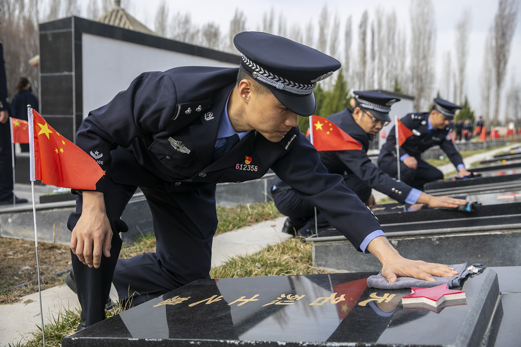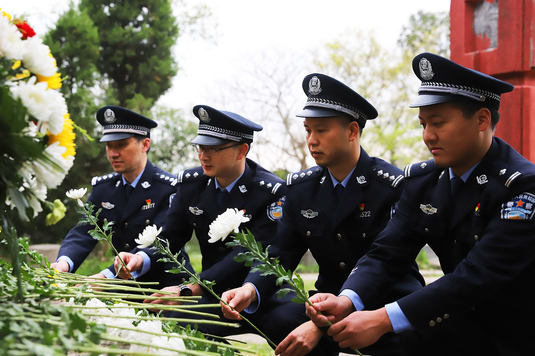4月1日,山東省棗莊市公安局市中分局交通警察大隊民警輔警在天馬山烈士陵園舉行祭奠活動。