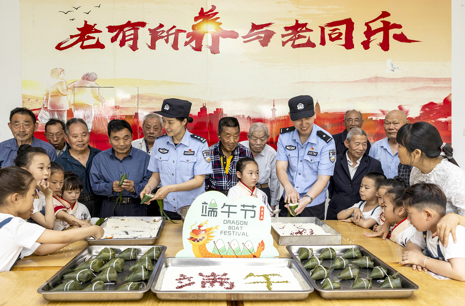 6月7日,南京鐵路公安處泰州站派出所、泰州市公安局海陵分局九龍派出所聯(lián)合九龍鎮(zhèn)中心幼兒園走進(jìn)泰州市海陵區(qū)九龍敬老院舉辦“濃濃粽香情 共迎端午節(jié)”活動(dòng)。