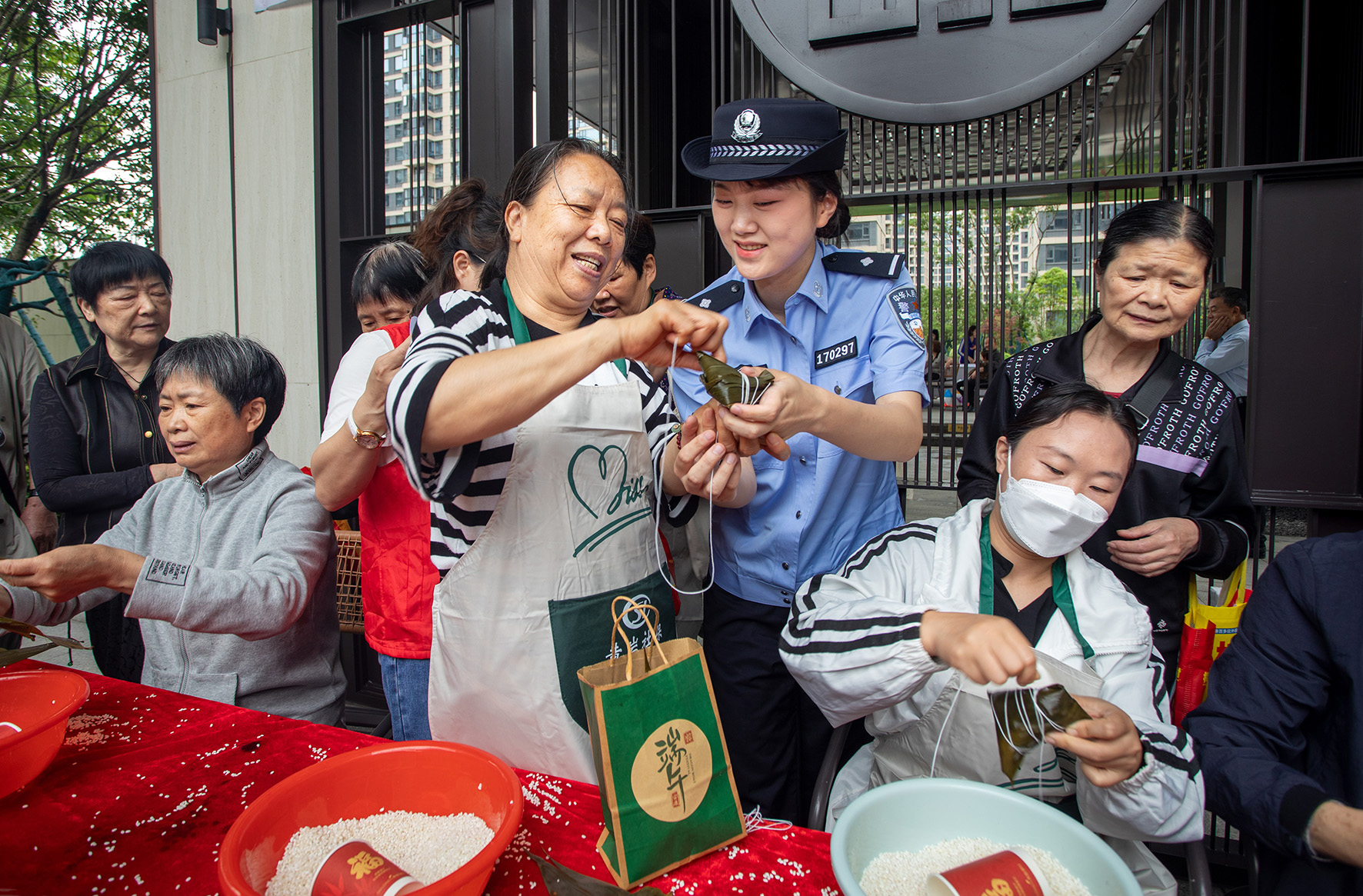 6月7日,浙江省臺(tái)州市公安局黃巖分局民警走進(jìn)西江社區(qū)與群眾一起包粽子、拉家常,同時(shí)開(kāi)展反詐防范宣傳。