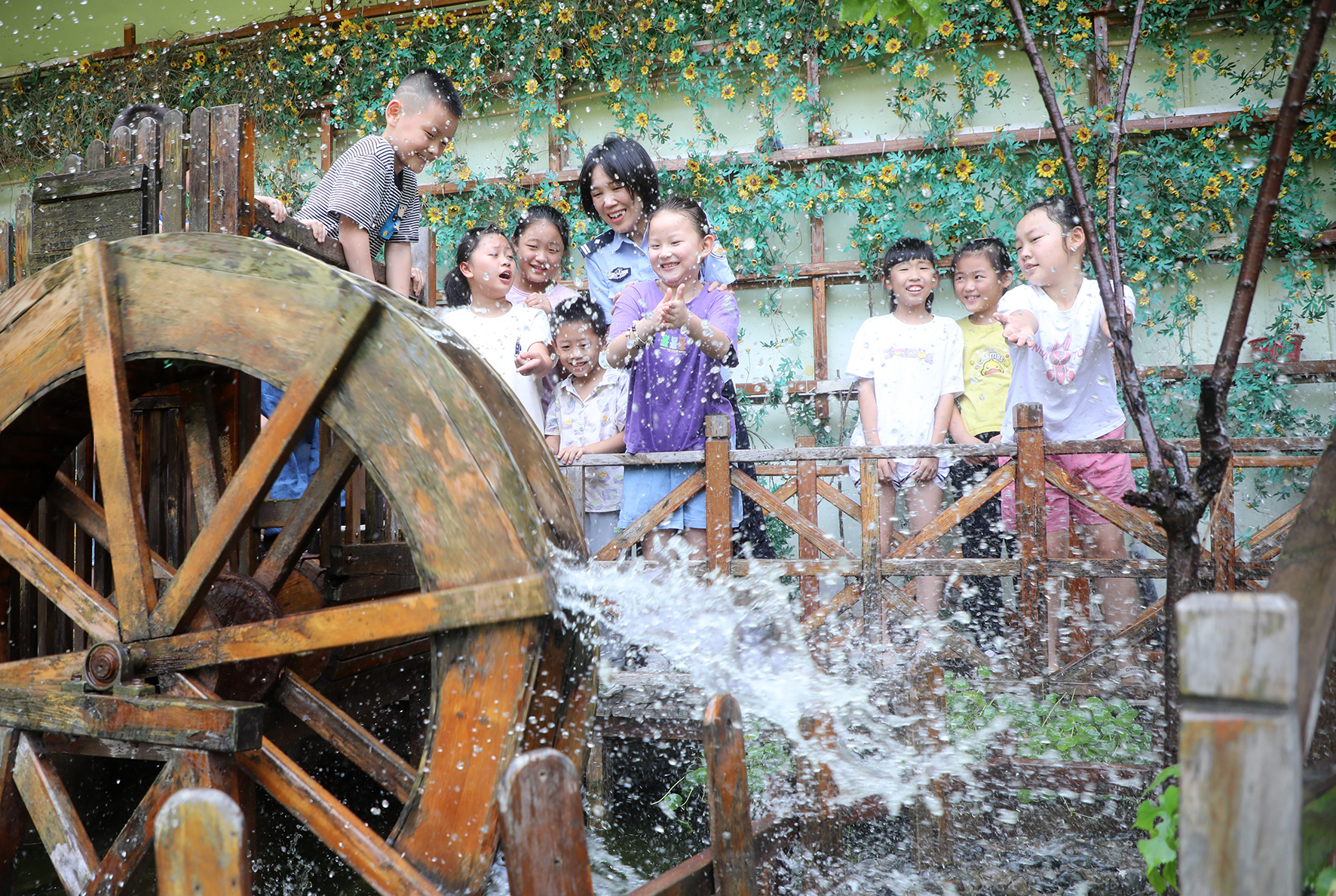 圖為7月10日,民警正在陪孩子們玩游戲,豐富孩子們的暑期生活。