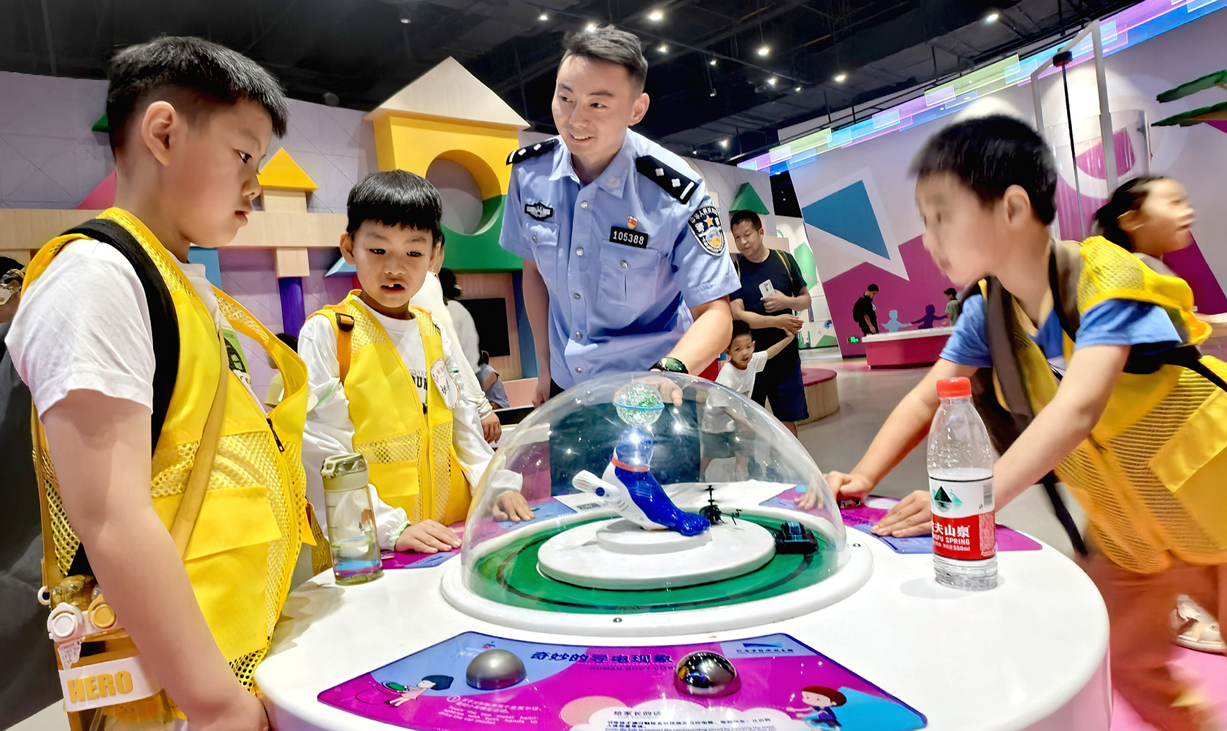 7月12日,河南省鄭州市公安局金水分局暑假警營愛心托管班的孩子們來到河南省科技館學(xué)習(xí)體驗(yàn)新科技。