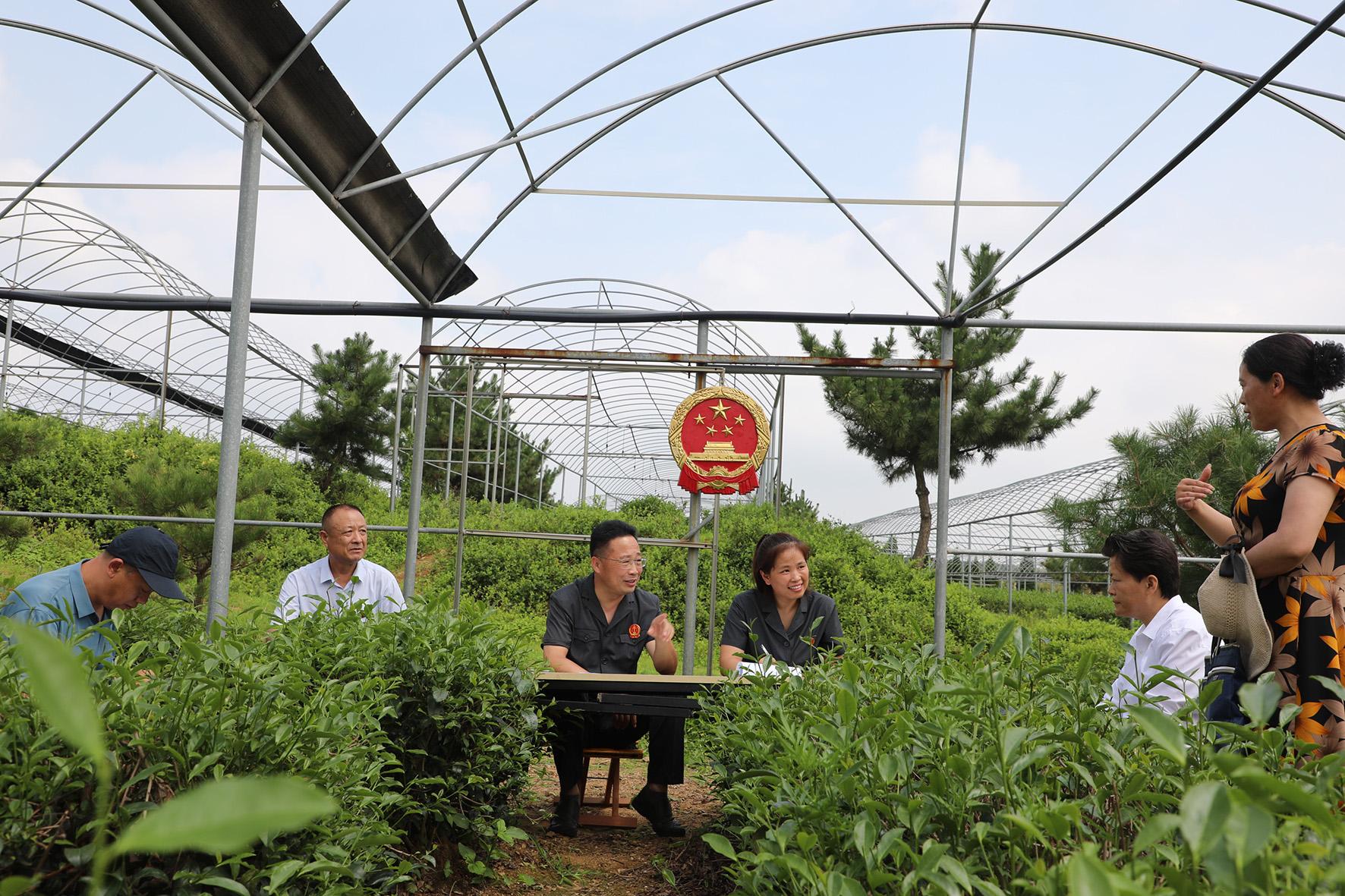 “俺代表村里的70多戶村民謝謝法官!”7月15日,山東省莒南縣人民法院洙邊法庭法官冒著酷暑來到洙邊鎮(zhèn)某村因茶園流轉(zhuǎn)引發(fā)糾紛的涉案茶園,在雙方當(dāng)事人的見證下,到現(xiàn)場(chǎng)進(jìn)行勘驗(yàn),并就地組織了一場(chǎng)別開生面的茶園庭審。最終,在法官和調(diào)解員的努力下,雙方達(dá)成調(diào)解協(xié)議。