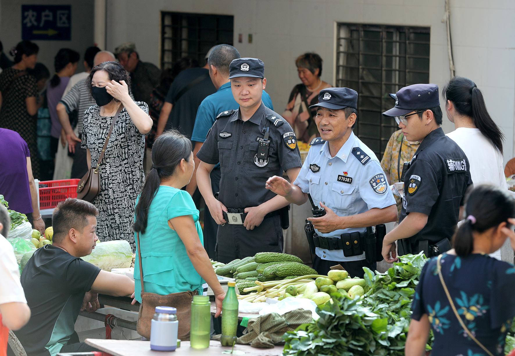 7月26日一大早,湖北省荊門市公安局巡特警支隊生態(tài)運動公園警務站民輔警在惠民市場,向商戶開展反扒防盜、安全防范等法治宣傳。