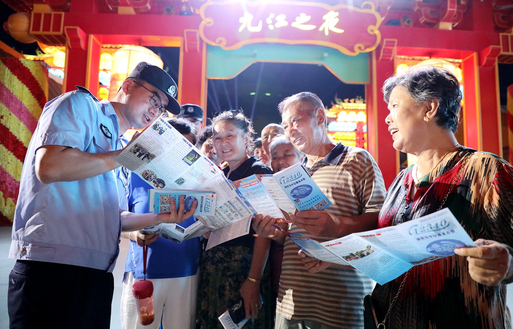 8月4日,江西省九江市公安局濂溪分局結(jié)合夏季治安打擊整治行動(dòng),組織民警輔警走進(jìn)村莊社區(qū)、文旅休閑街區(qū)開展“平安夏夜 共同守護(hù)”主題安全知識(shí)宣傳活動(dòng),把安全防范知識(shí)送到群眾身邊。
