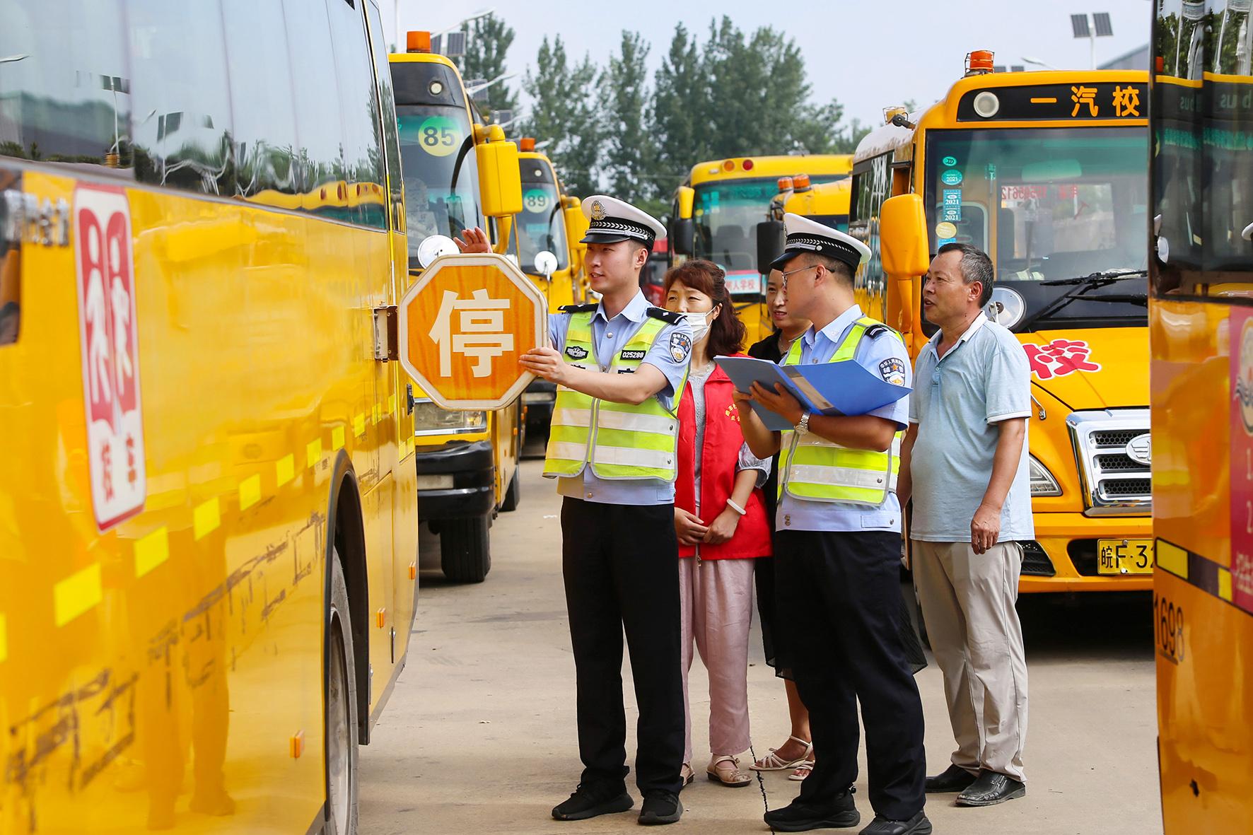 開學(xué)臨近,淮北市公安局交警支隊四大隊組織開展校車安全專項大檢查,消除校車安全隱患,保障學(xué)生乘車安全。