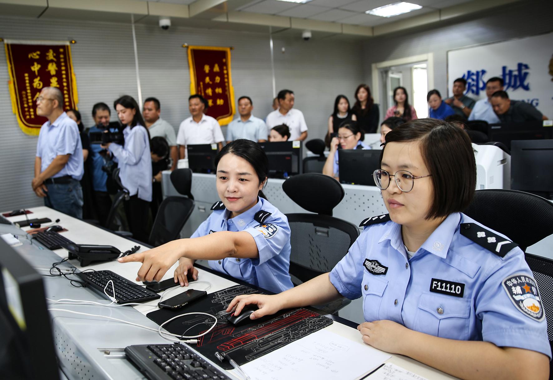 圖為社會各界人士參觀交警大隊指揮中心。