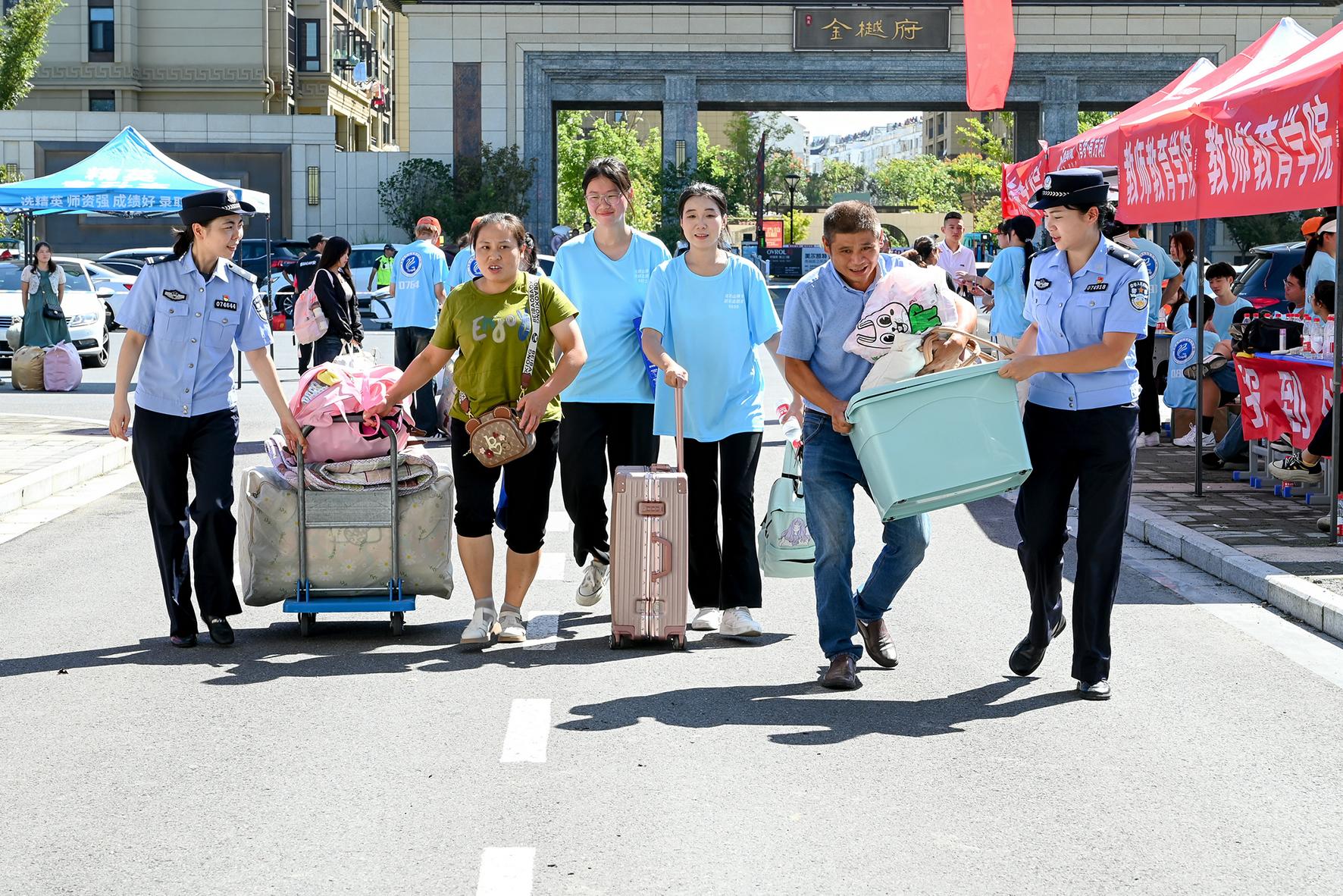 9月18日,在安徽省馬鞍山師范高等??茖W(xué)校,和縣公安局歷陽派出所民警正在幫助大一新生搬運(yùn)行李,并對(duì)新生及家長(zhǎng)開展反詐、禁毒普法宣傳。