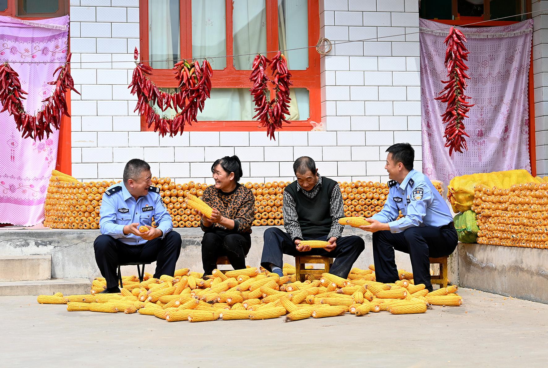 9月19日,在甘肅省蘭州市榆中縣龍泉鄉(xiāng),蘭州市公安局駐村工作隊(duì)隊(duì)員深入田間地頭、村民家中,摸排矛盾糾紛,宣傳安全生產(chǎn)知識(shí),幫助村民解決急難愁盼問(wèn)題,零距離守護(hù)秋收生產(chǎn)。