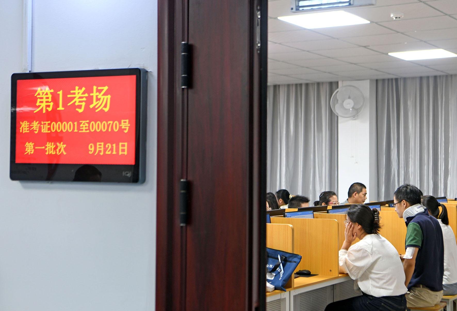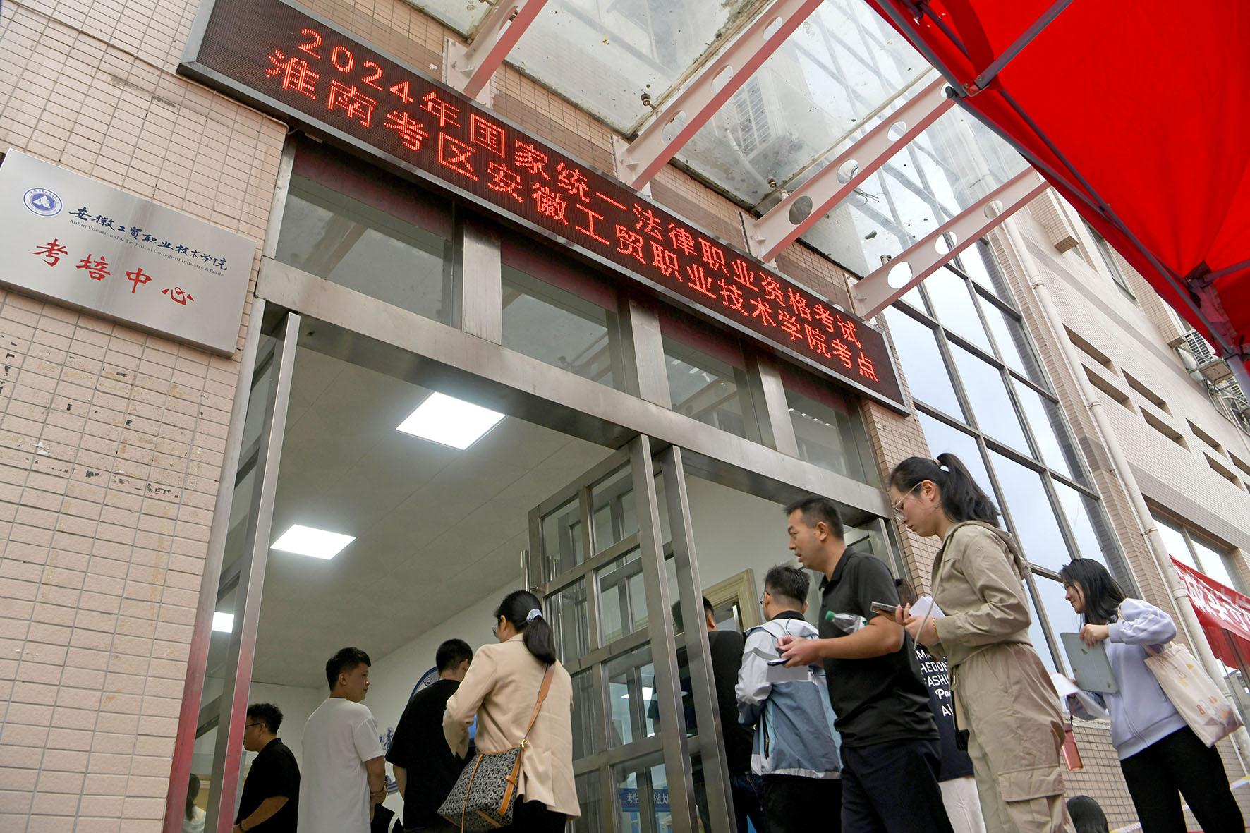 9月21日,安徽省淮南市考生在安徽工貿(mào)職業(yè)技術(shù)學(xué)院考點(diǎn)參加2024年國家統(tǒng)一法律職業(yè)資格考試客觀題考試。當(dāng)日,2024年國家統(tǒng)一法律職業(yè)資格考試客觀題考試開考,安徽淮南考區(qū)1420名考生報(bào)名參加考試。
