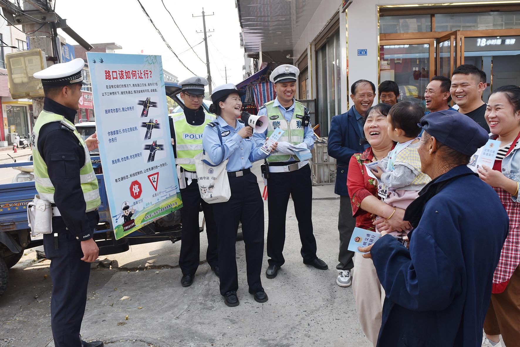 10月10日,安徽省宿松縣公安局交警大隊(duì)民輔警深入G347國(guó)道沿線偏遠(yuǎn)鄉(xiāng)鎮(zhèn)村莊,就國(guó)道沿線路口讓行規(guī)則向村民們開(kāi)展精準(zhǔn)宣講。