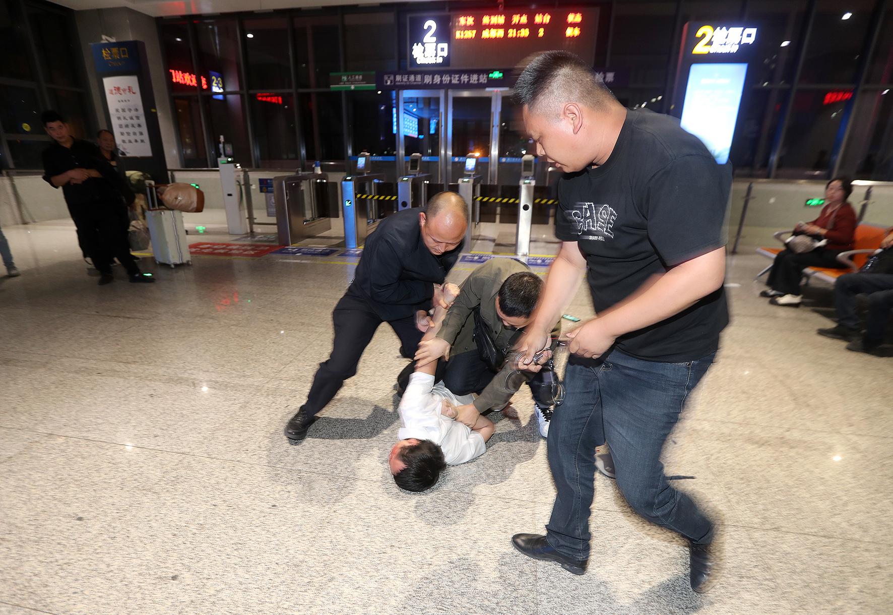 圖一:盜竊嫌疑人在荊門市火車站現(xiàn)身,便衣民警經(jīng)核對相貌后,準(zhǔn)備實(shí)施抓捕。